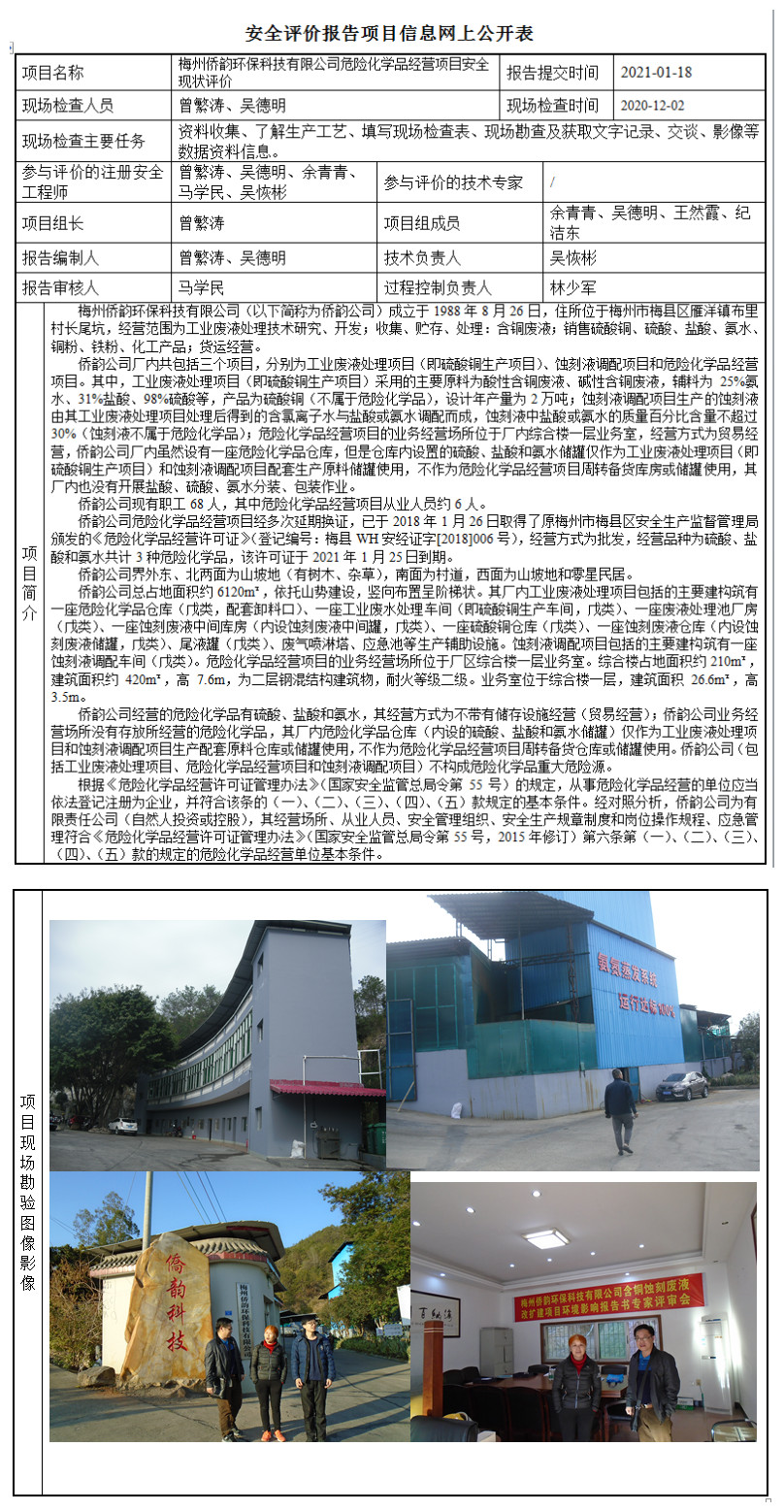 梅州侨韵环保科技有限公司危险化学品经营项目安全现状评价