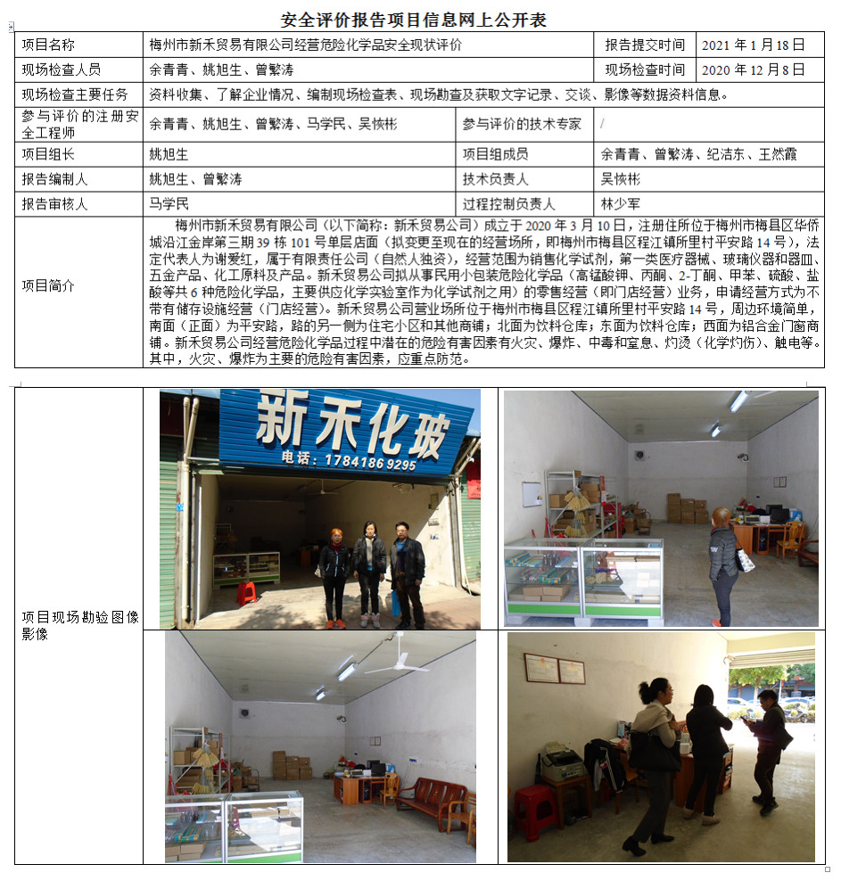 梅州市新禾贸易有限公司经营危险化学品安全现状评价
