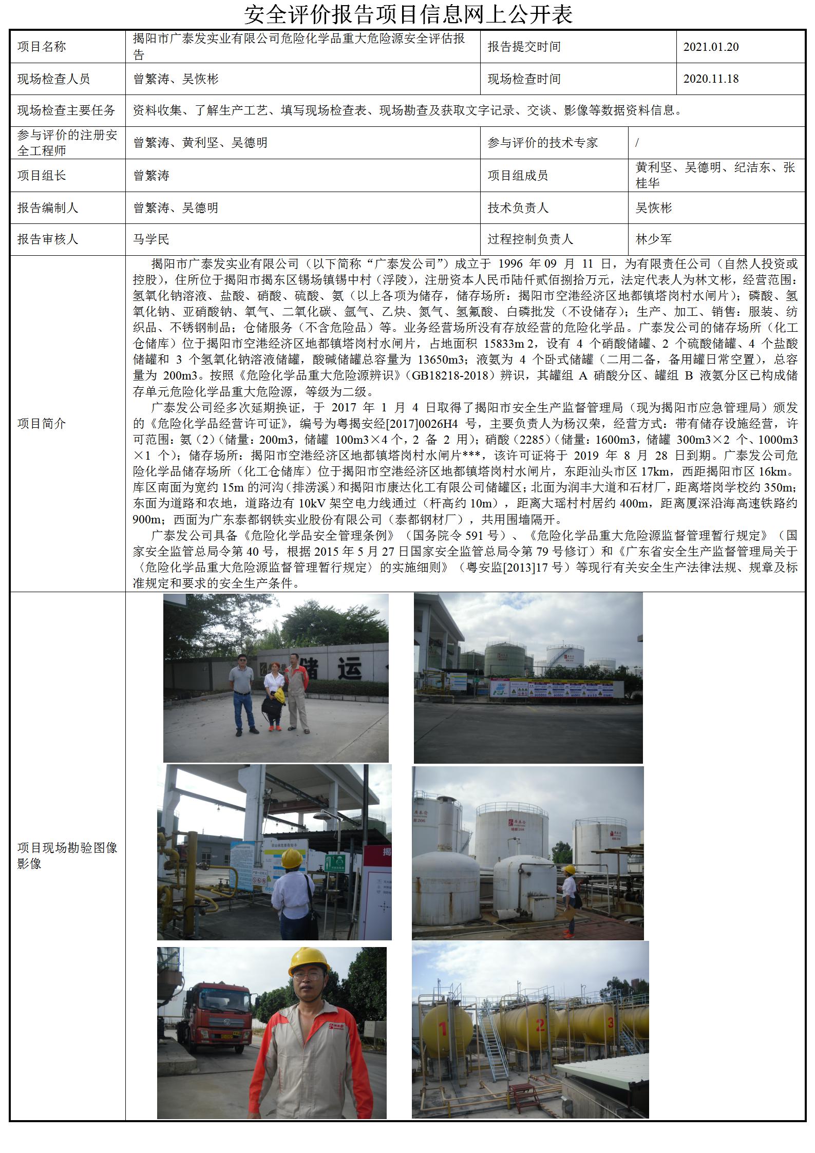 揭阳市广泰发实业有限公司危险化学品重大危险源安全评估