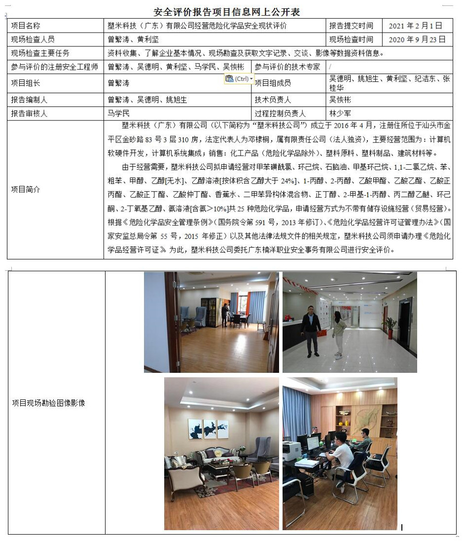 塑米科技(广东)有限公司经营危险化学品安全现状评价