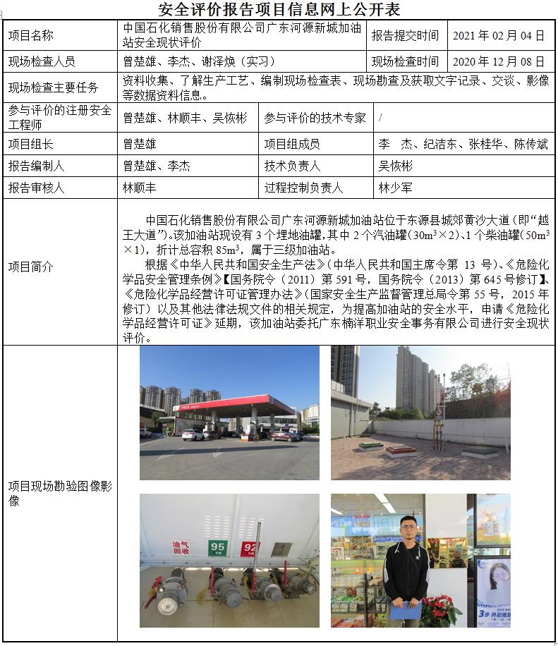 中国石化销售股份有限公司广东河源新城加油站安全现状评价