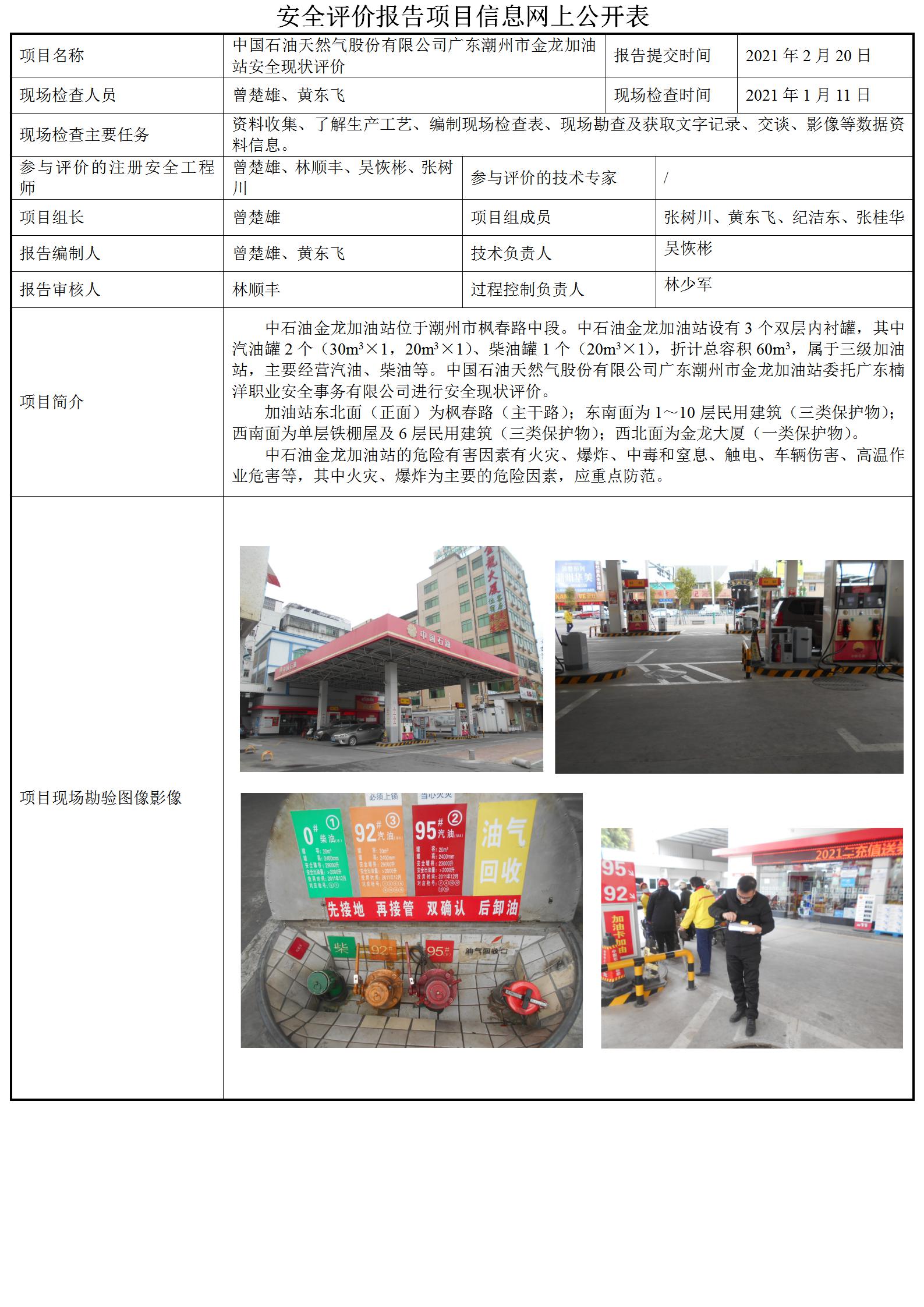 中国石油天然气股份有限公司广东潮州市金龙加油站安全现状评价