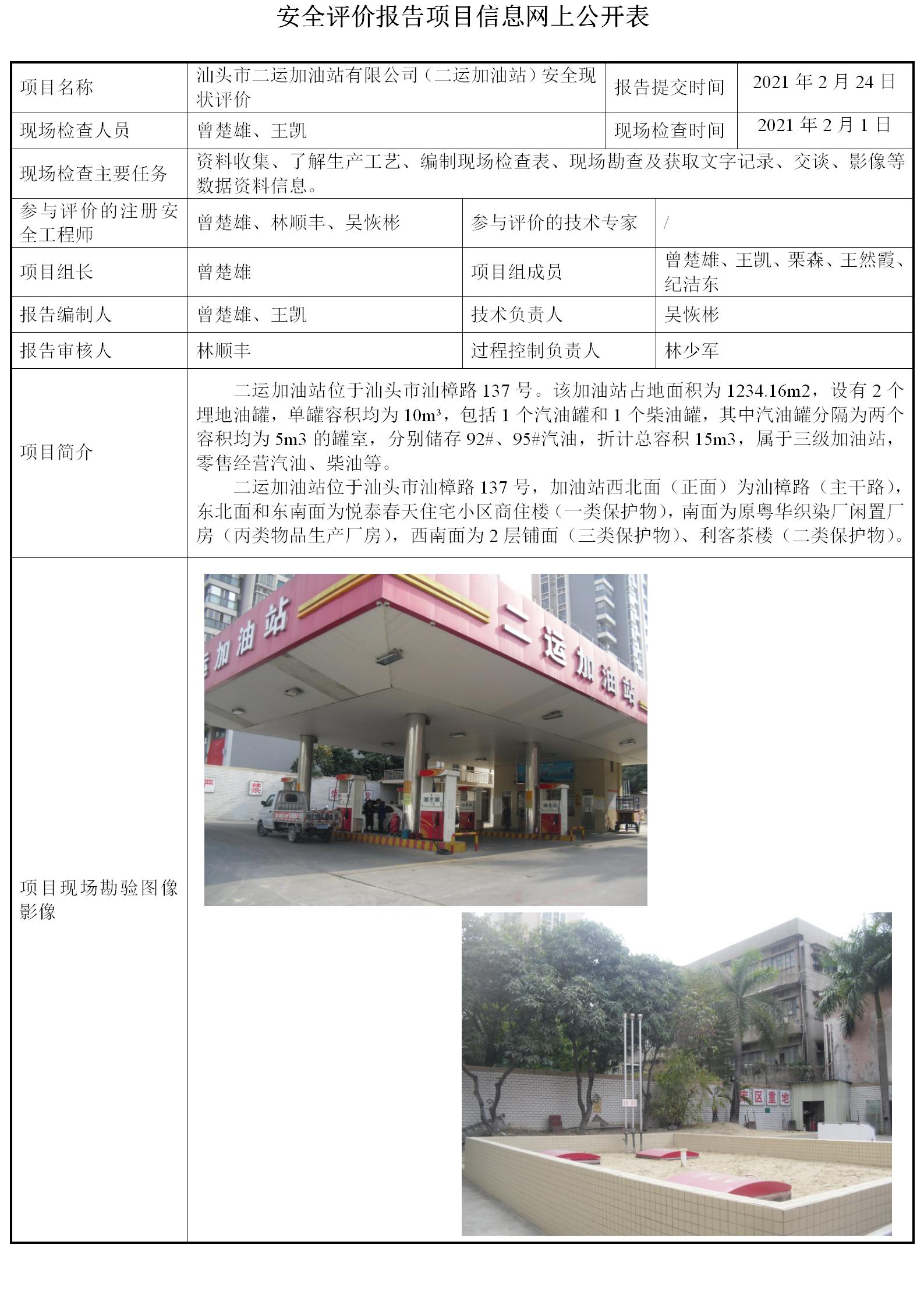 汕头市二运加油站有限公司(二运加油站)安全现状评价