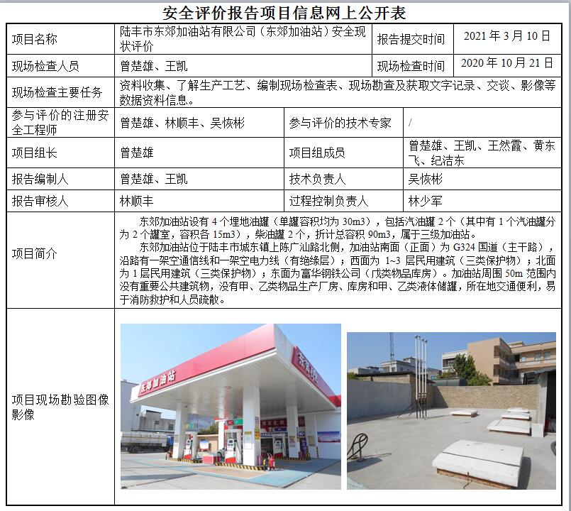 陆丰市东郊加油站有限公司(东郊加油站)安全现状评价