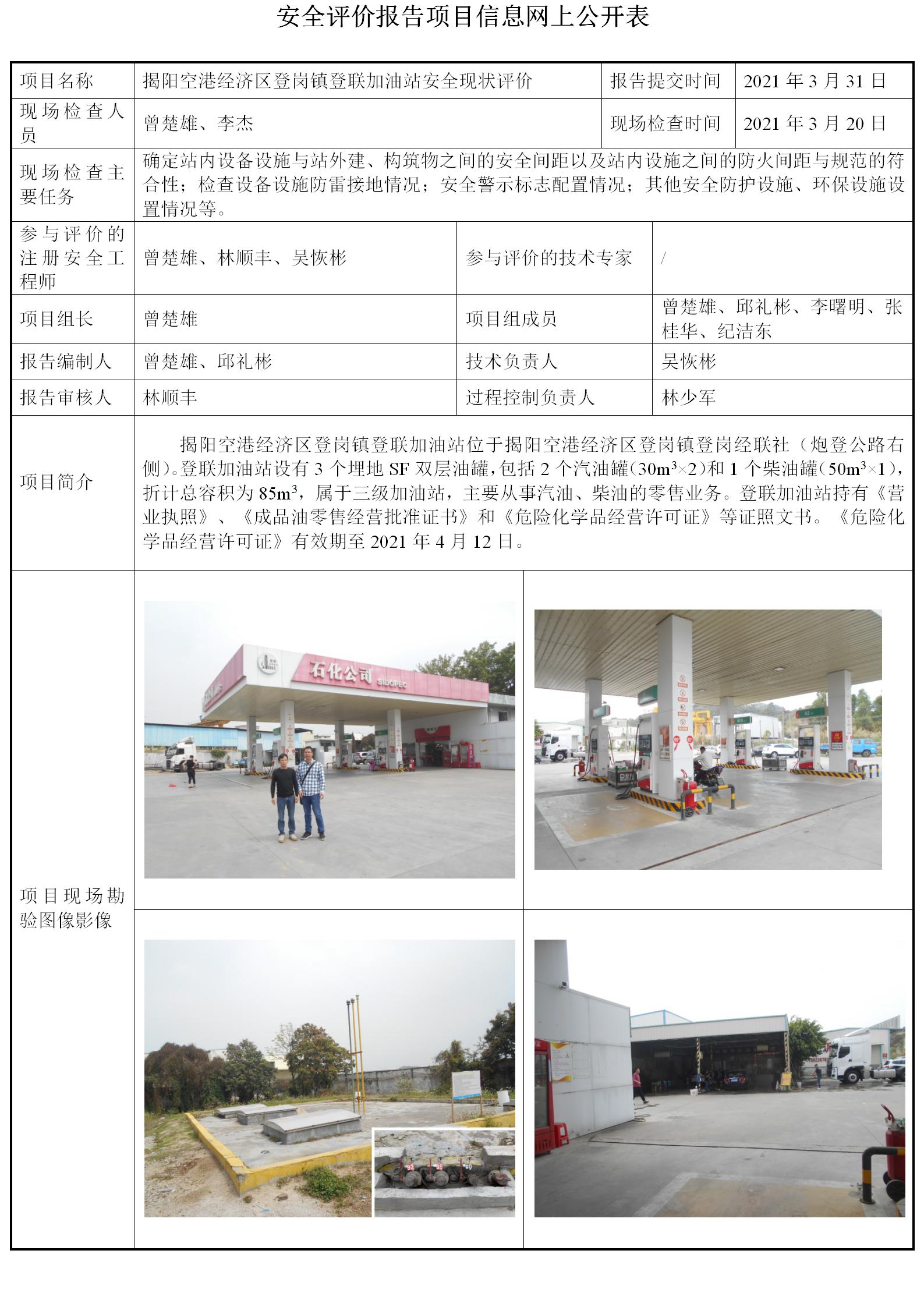 揭阳空港经济区登岗镇登联加油站安全现状评价