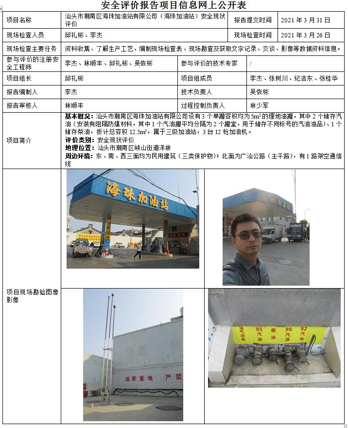 汕头市潮南区海珠加油站有限公司(海珠加油站)安全现状评价