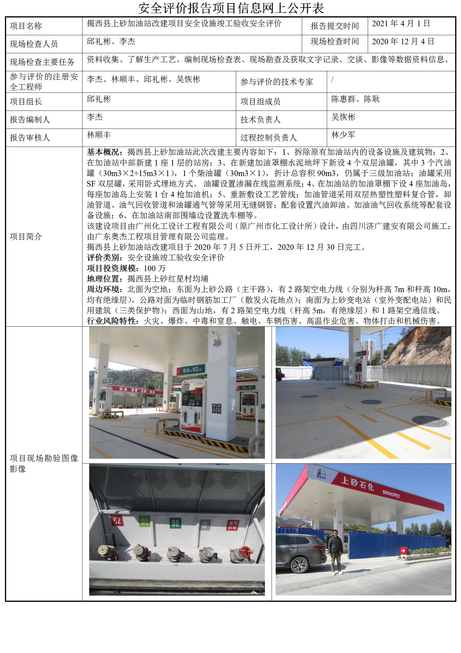 揭西县上砂加油站改建项目安全设施竣工验收安全评价