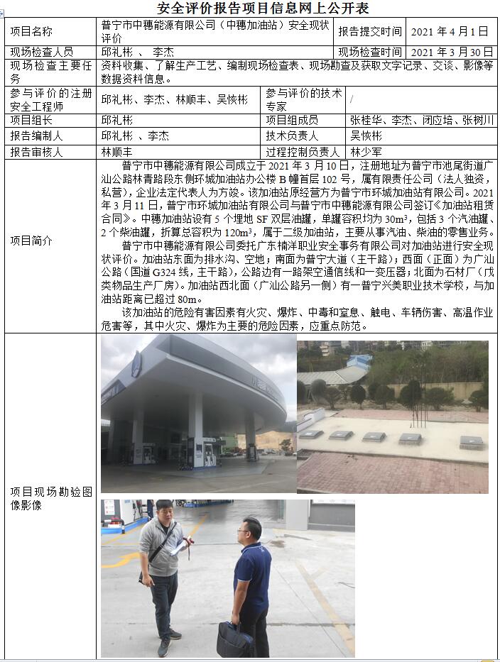 普宁市中穗能源有限公司(中穗加油站)安全现状评价