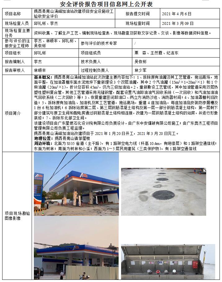 揭西县南山涌峰加油站改建项目安全设施竣工验收安全评价