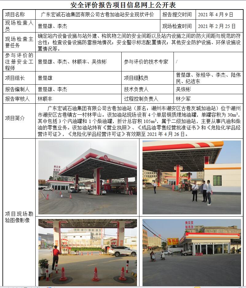 广东宏诚石油集团有限公司古巷加油站安全现状评价