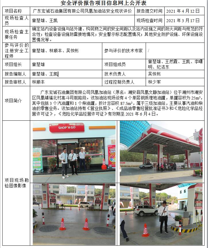 广东宏诚石油集团有限公司凤凰加油站安全现状评价
