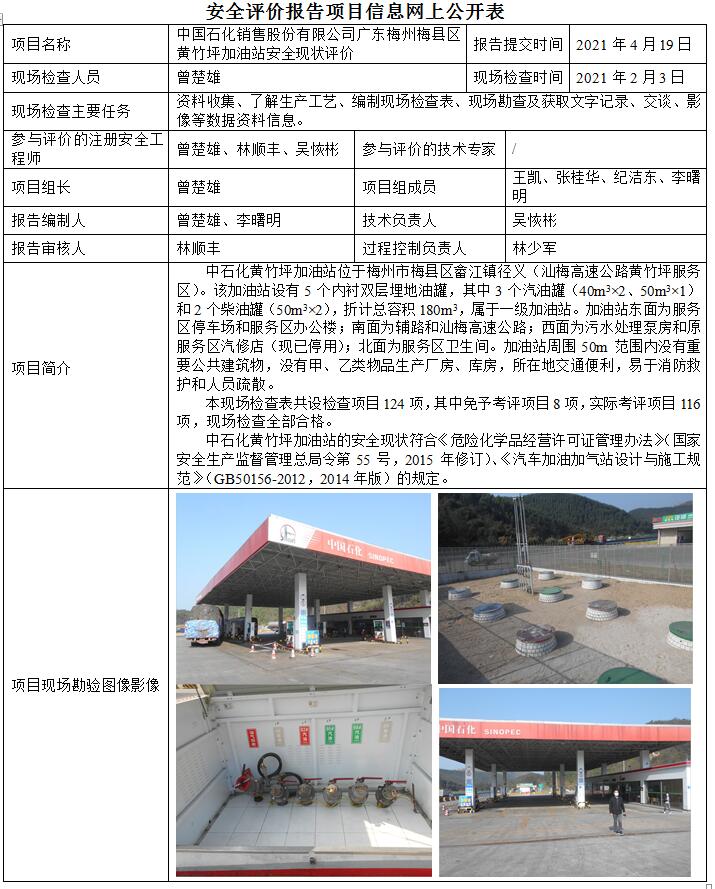 中国石化销售股份有限公司广东梅州梅县区黄竹坪加油站安全现状评价