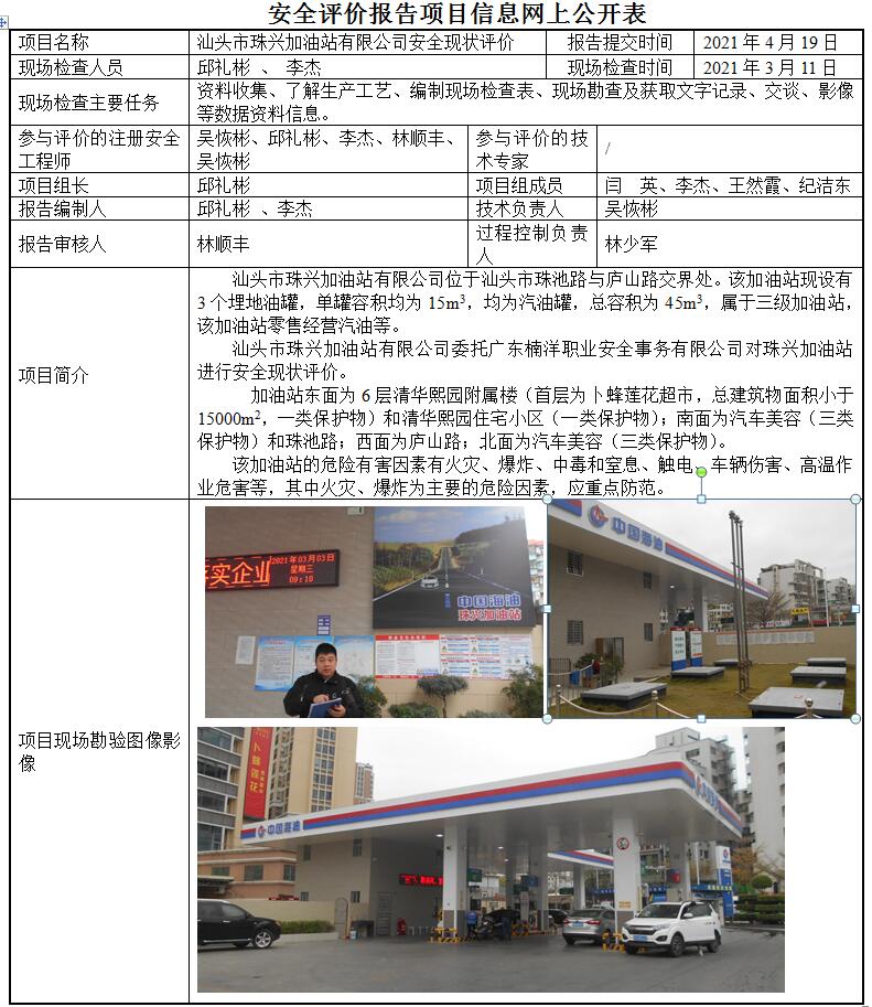 中国石化销售股份有限公司广东梅州梅县区黄竹坪加油站安全现状评价