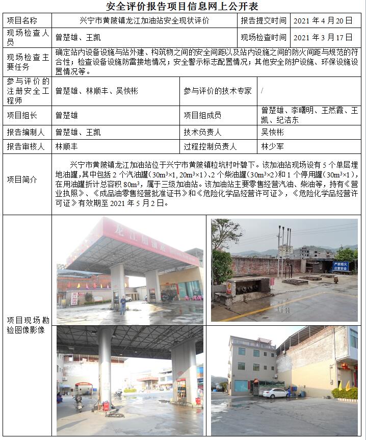 中国石化销售股份有限公司广东汕头南澳亨翔加油站安全现状评价