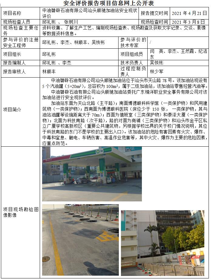 中油碧辟石油有限公司汕头顺驰加油站安全现状评价