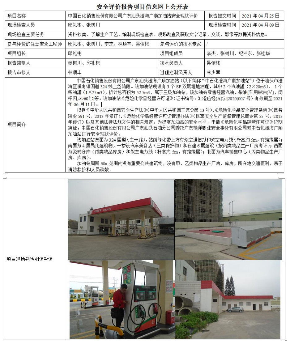 中国石化销售股份有限公司广东汕头澄海广顺加油站安全现状评价