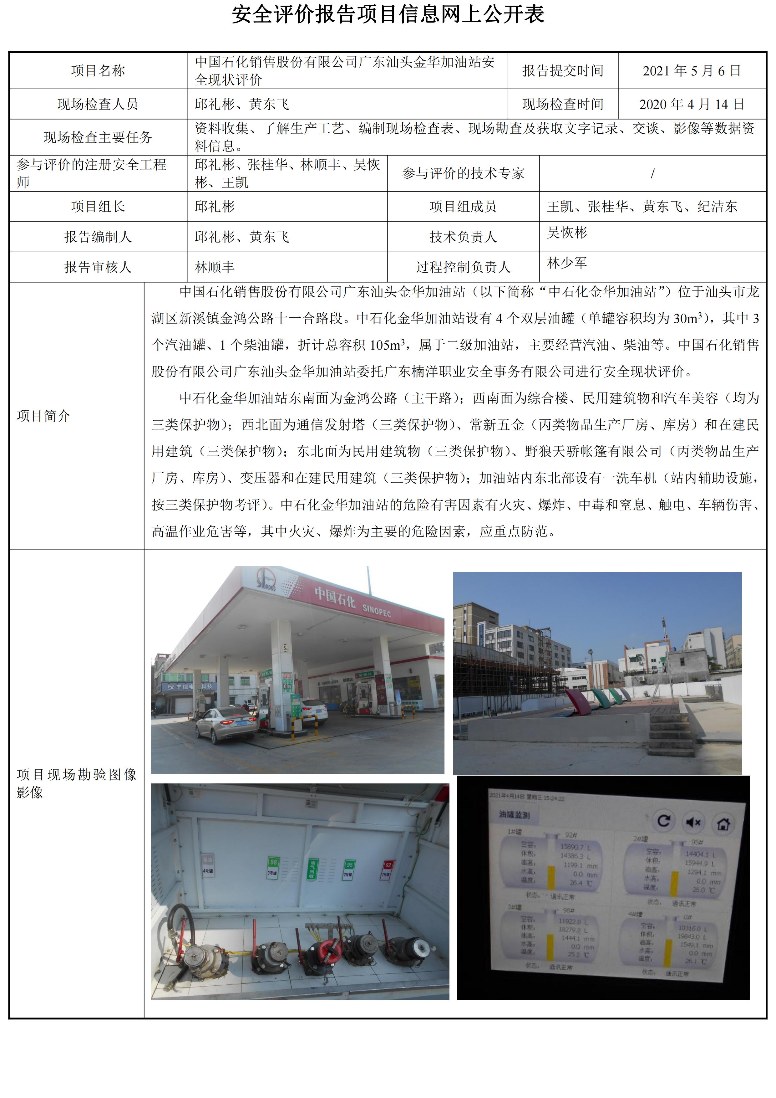 中国石化销售股份有限公司广东汕头金华加油站安全现状评价