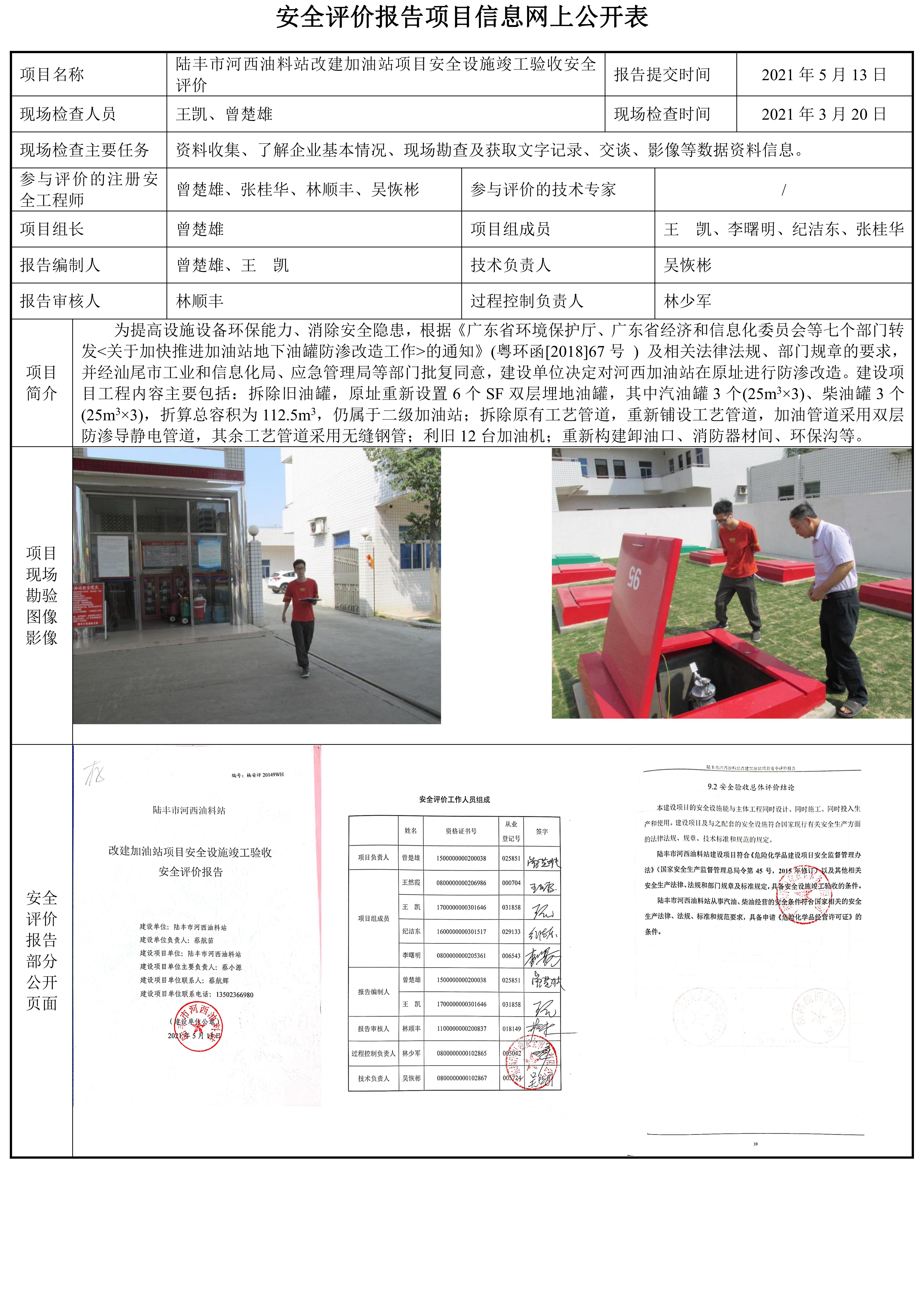陆丰市河西油料站改建加油站项目安全设施竣工验收安全评价