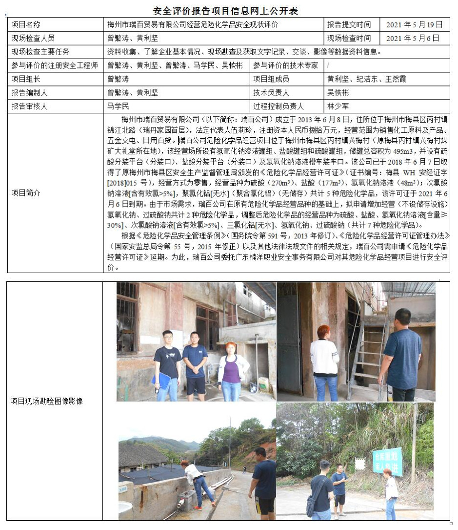 梅州市瑞百贸易有限公司经营危险化学品安全现状评价