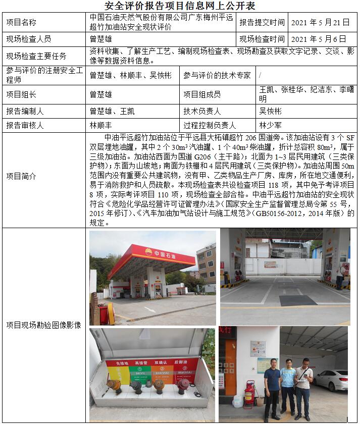 中国石油天然气股份有限公司广东梅州平远超竹加油站安全现状评价