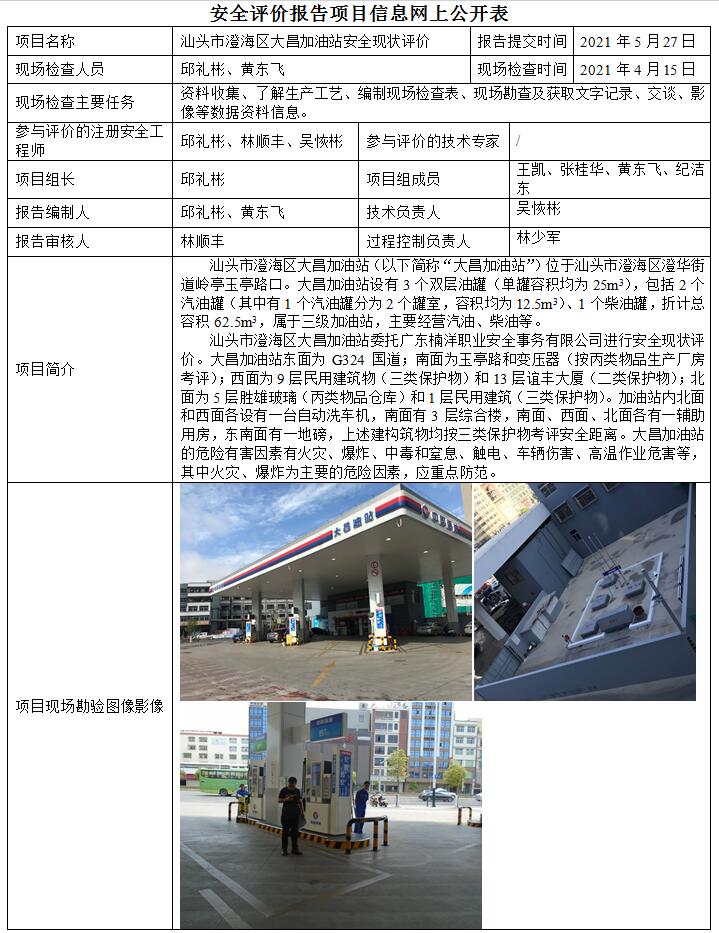 中国石化销售股份有限公司广东汕尾石油分公司安全现状评价