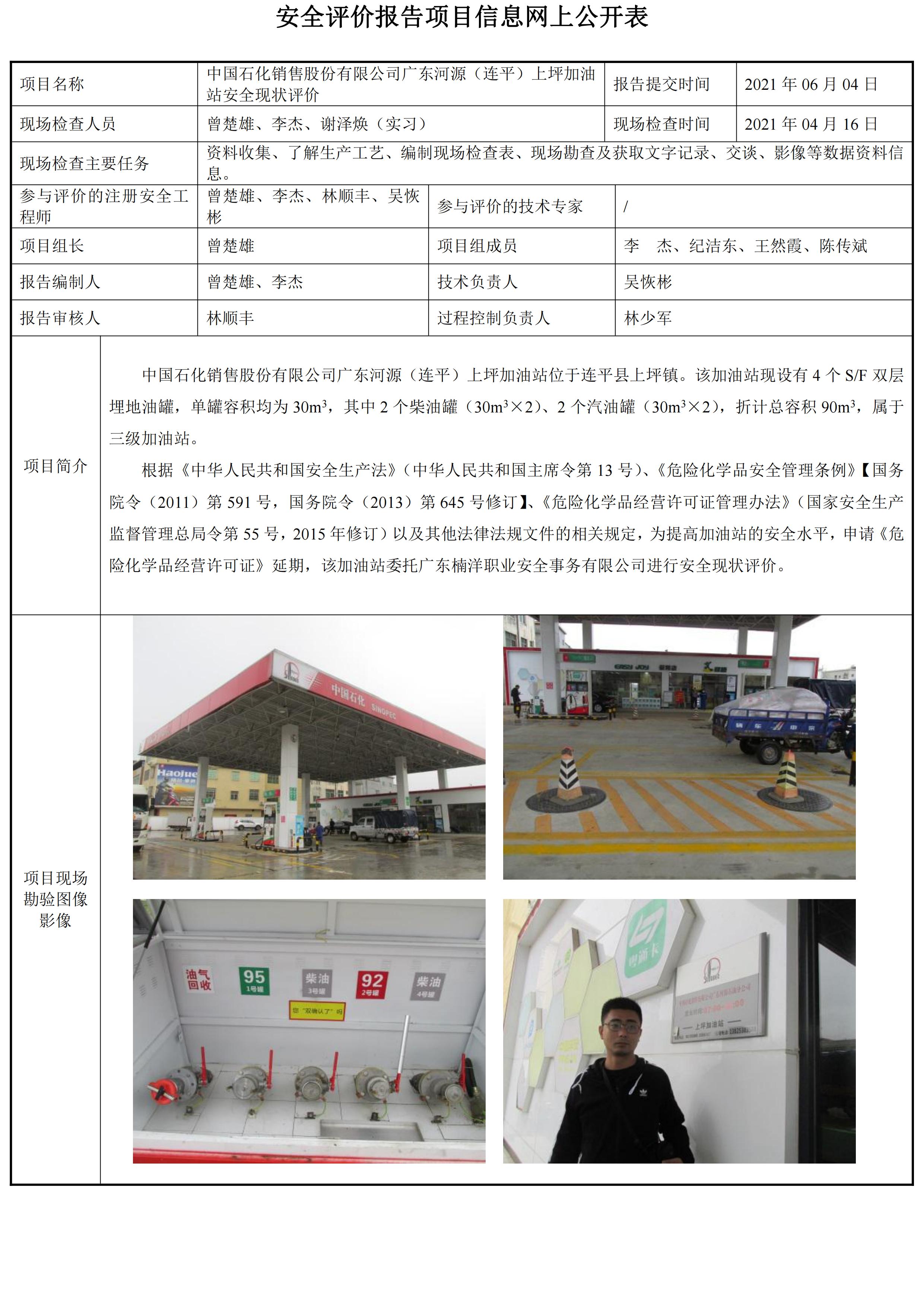中国石化销售股份有限公司广东河源(连平)上坪加油站安全现状评价