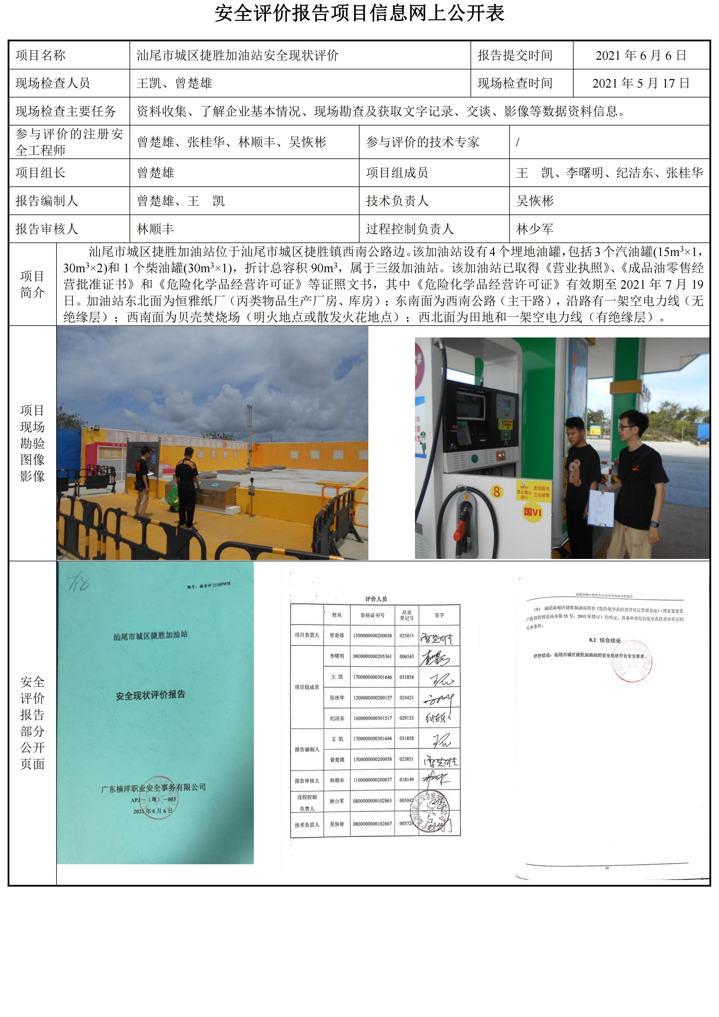 汕尾市城区捷胜加油站安全现状评价