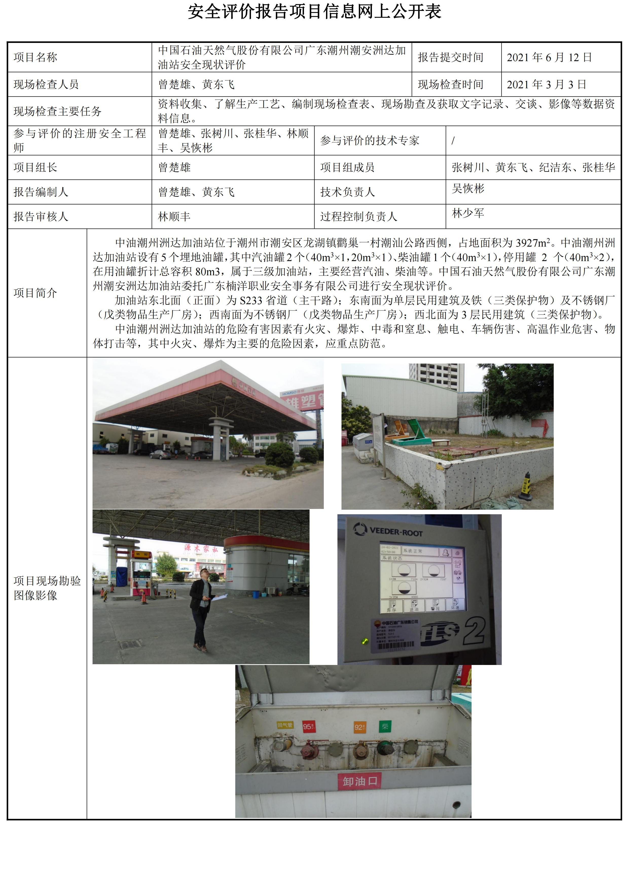 中国石油天然气股份有限公司广东潮州潮安洲达加油站安全现状评价