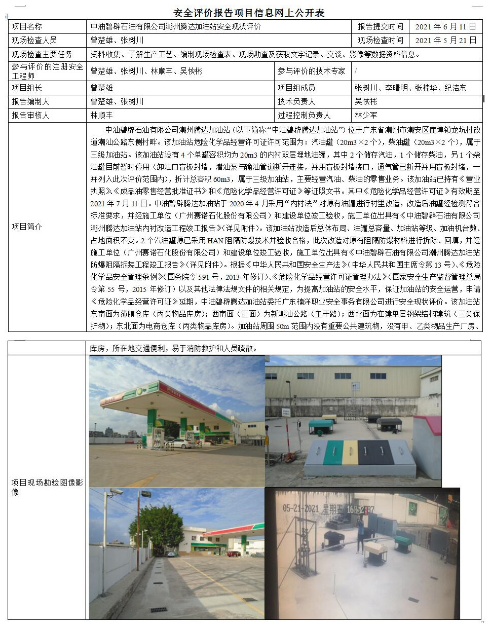 中油碧辟石油有限公司潮州腾达加油站安全现状评价