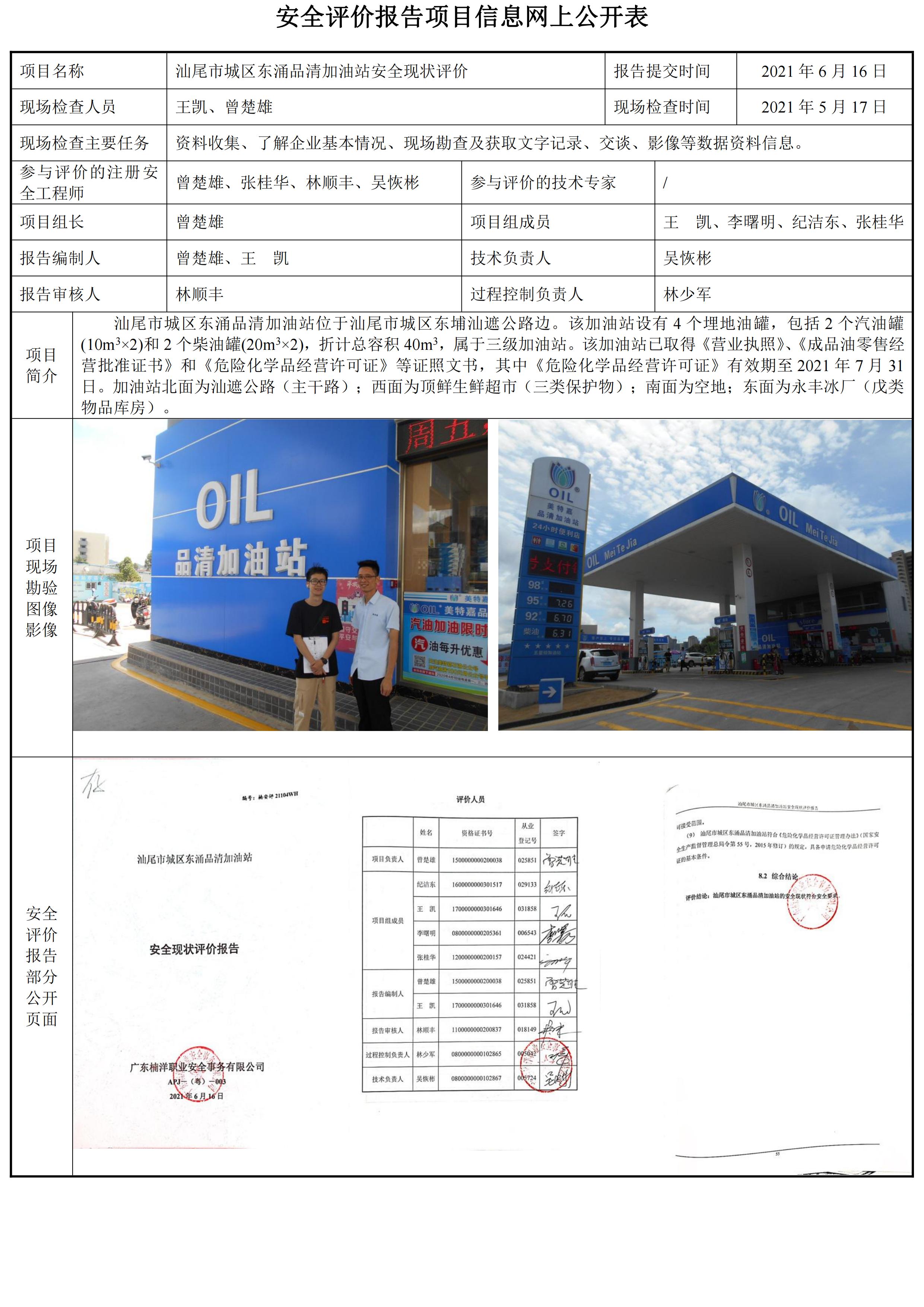 中国石化销售有限公司广东潮州饶平通港加油站安全现状评价