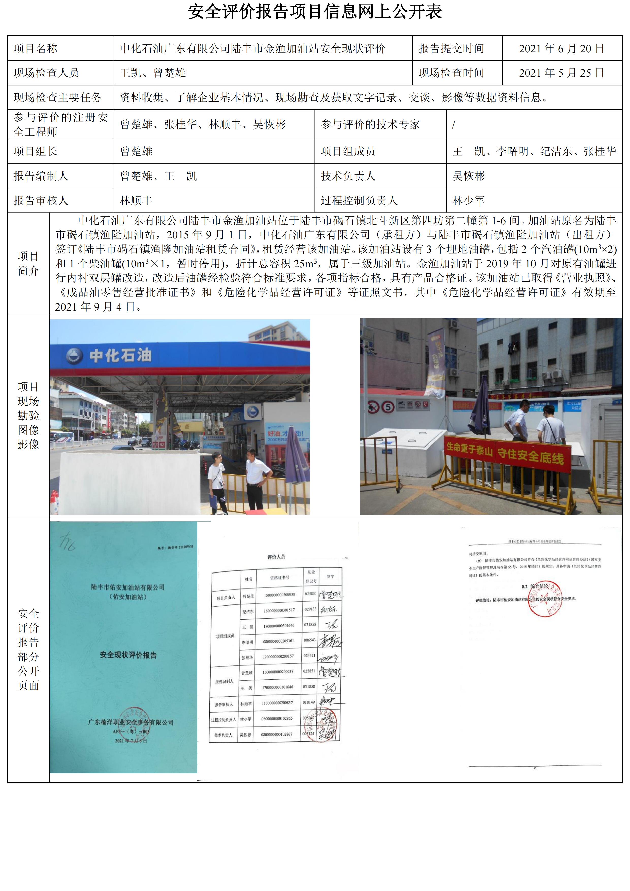 中化石油广东有限公司陆丰市金渔加油站安全现状评价