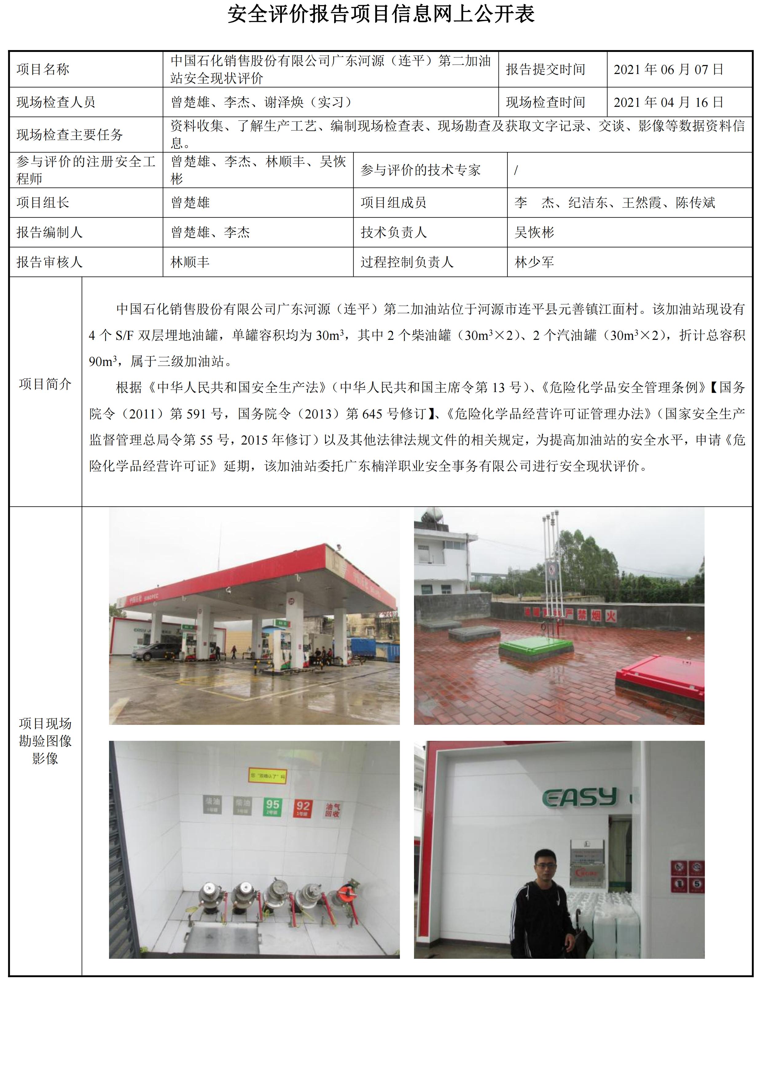 中国石化销售股份有限公司广东河源(连平)第二加油站安全现状评价