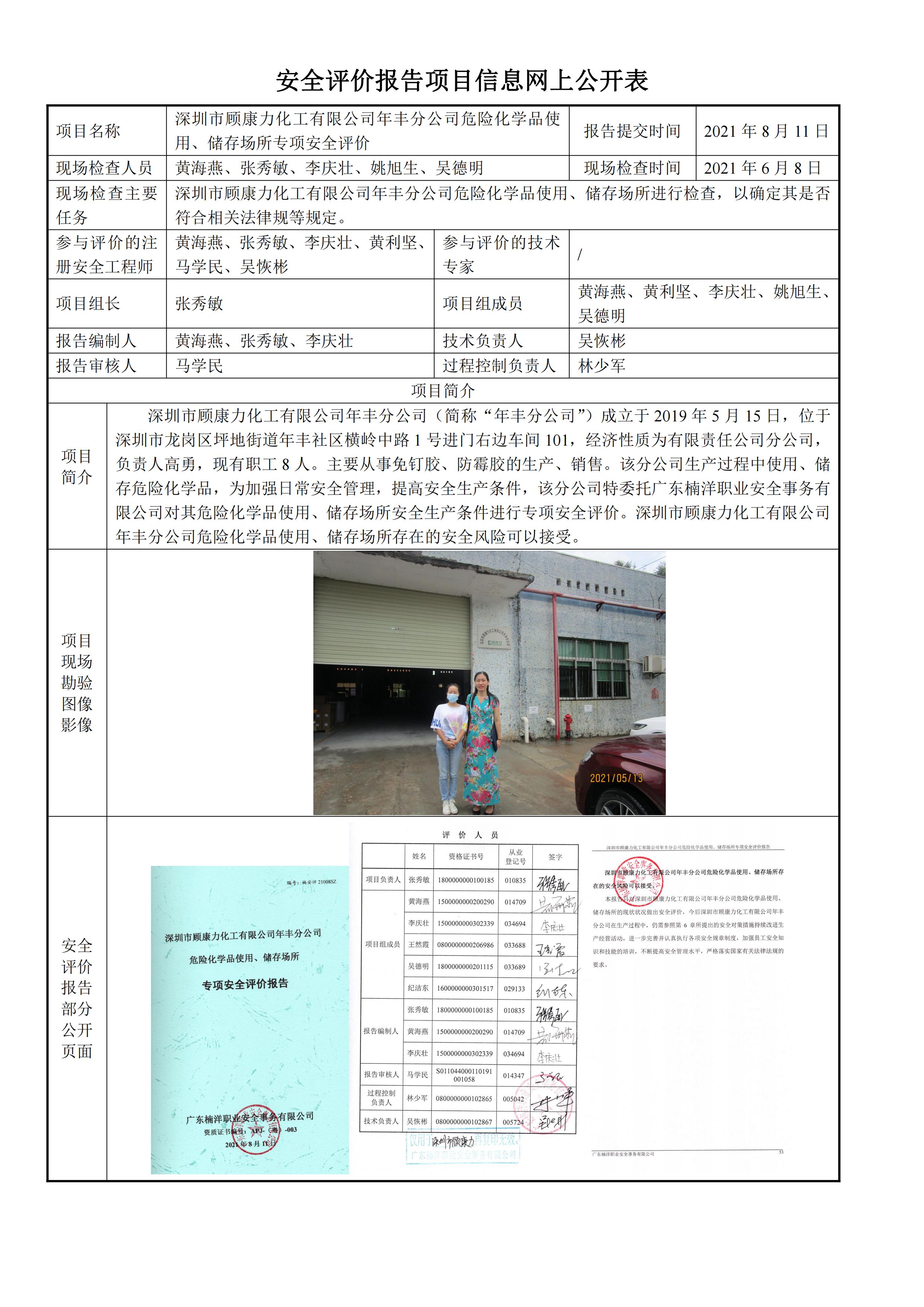 深圳市顾康力化工有限公司年丰分公司危险化学品使用、储存场所专项安全评价报告