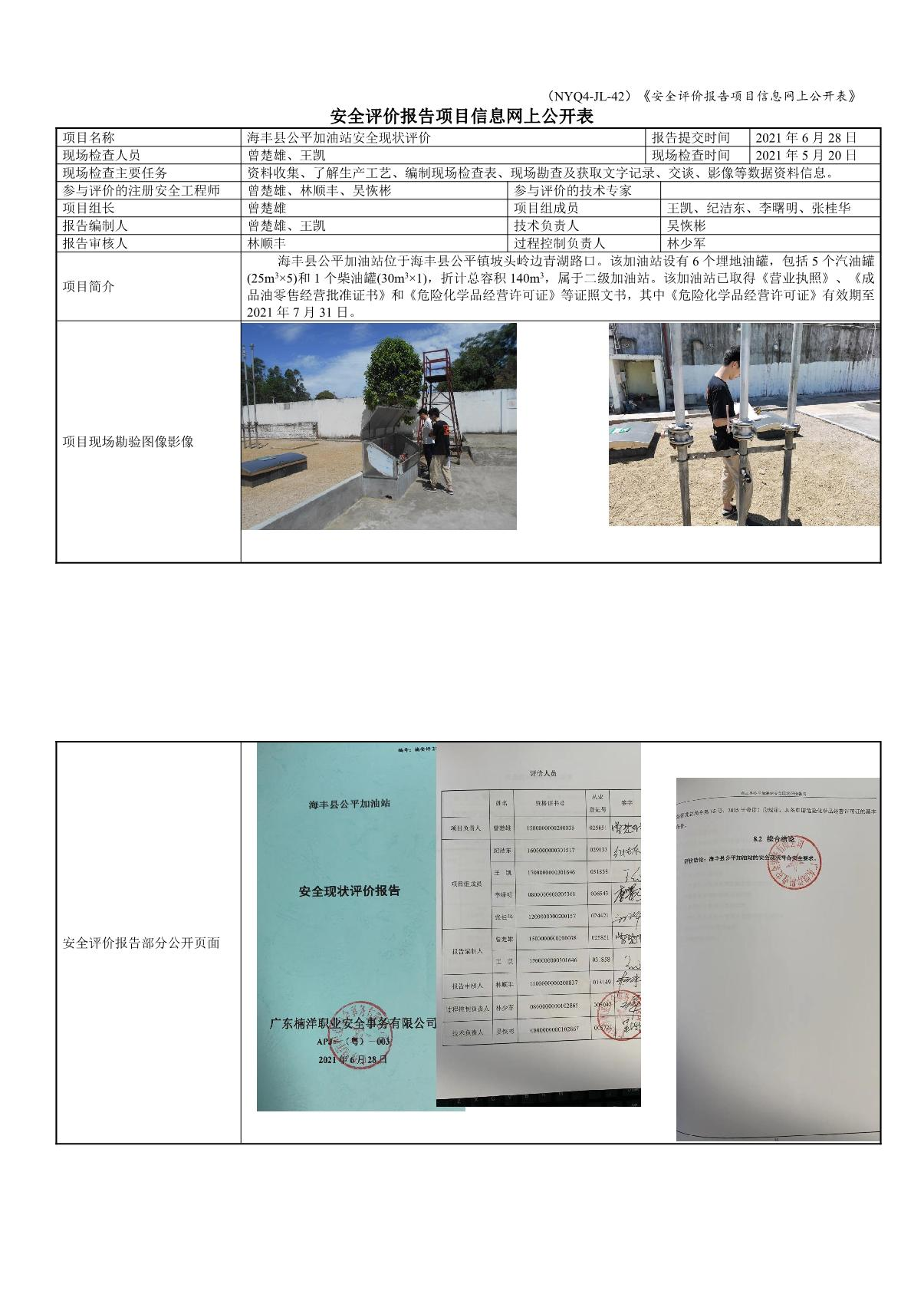 海丰县公平加油站安全现状评价