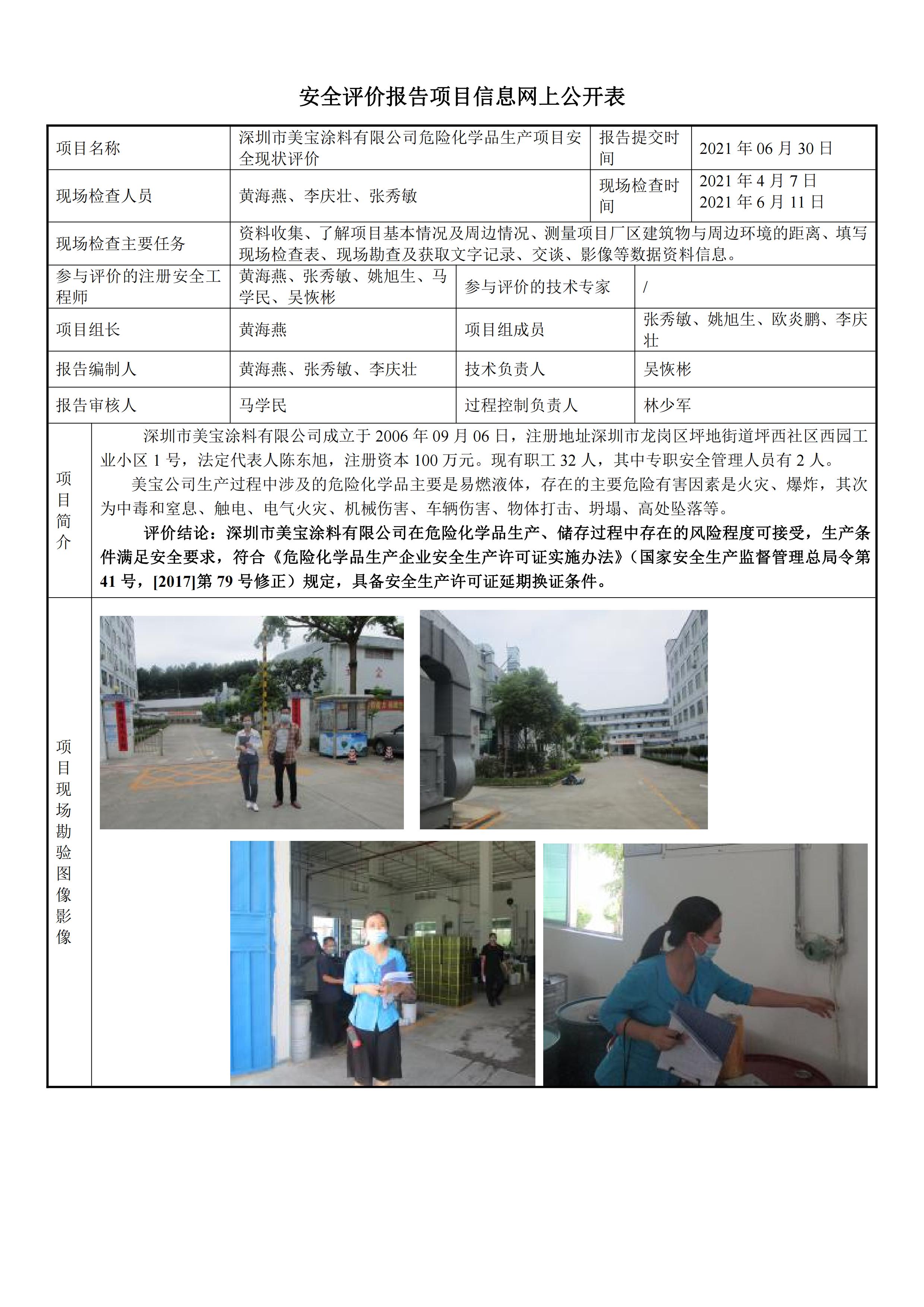 深圳市美宝涂料有限公司危险化学品生产项目安全现状评价