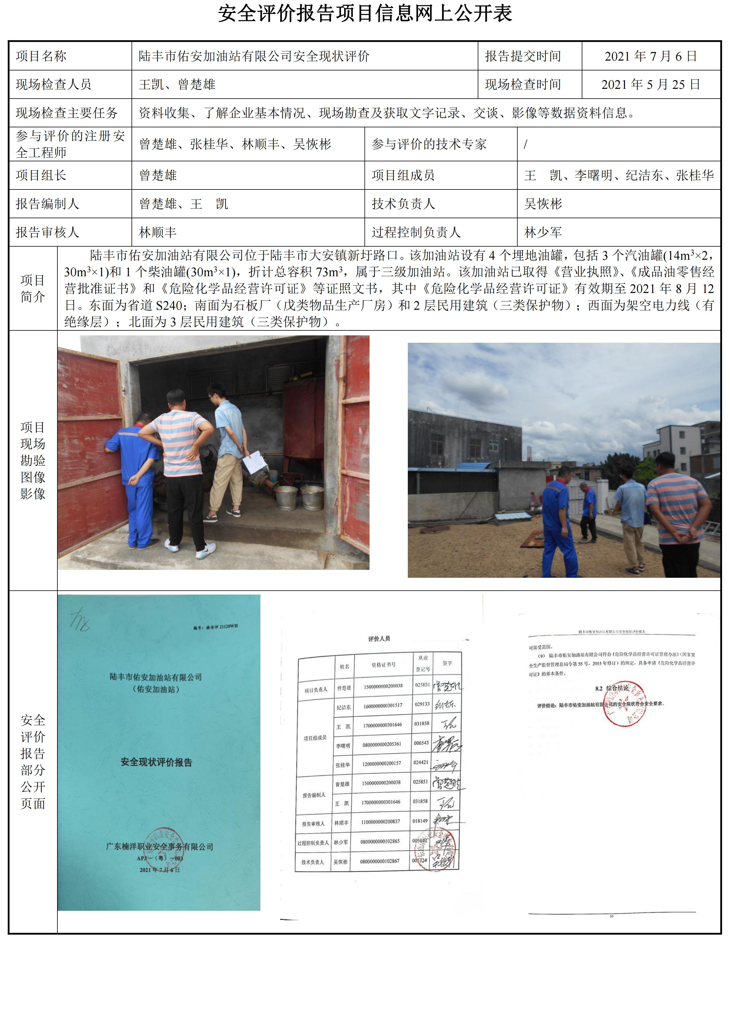 陆丰市佑安加油站有限公司(佑安加油站)安全现状评价