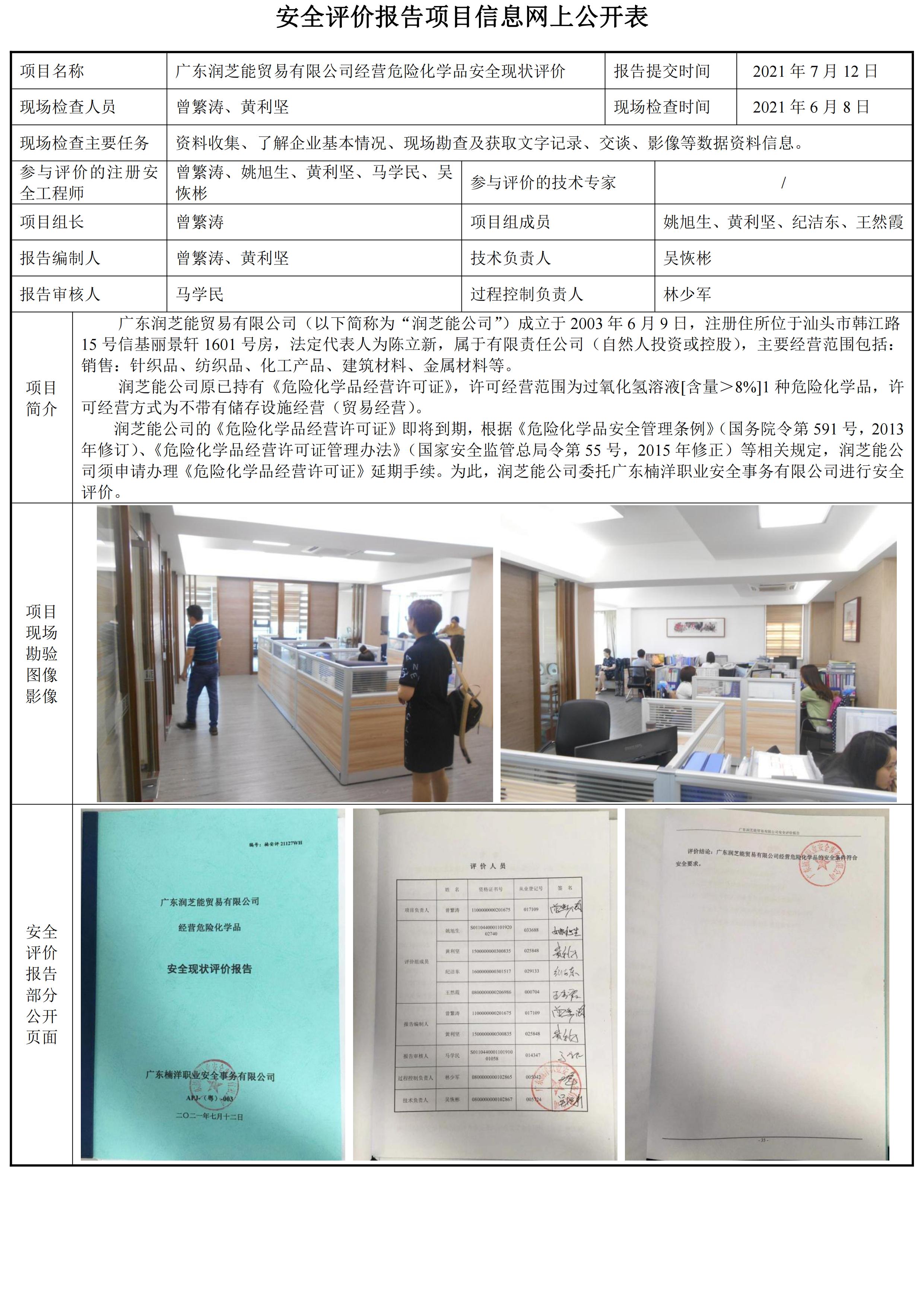 广东润芝能贸易有限公司经营危险化学品安全现状评价
