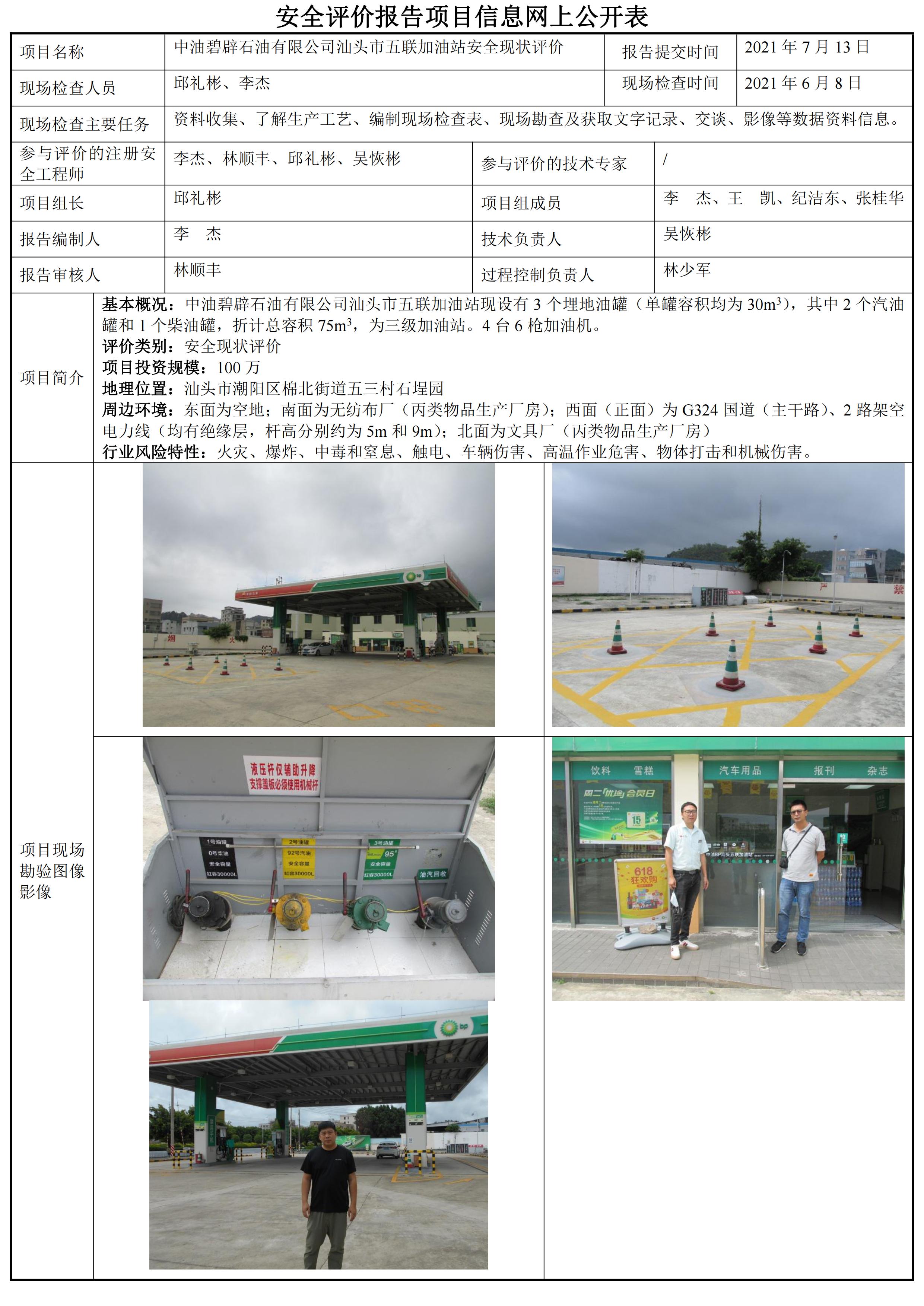 中油碧辟石油有限公司汕头市五联加油站安全现状评价