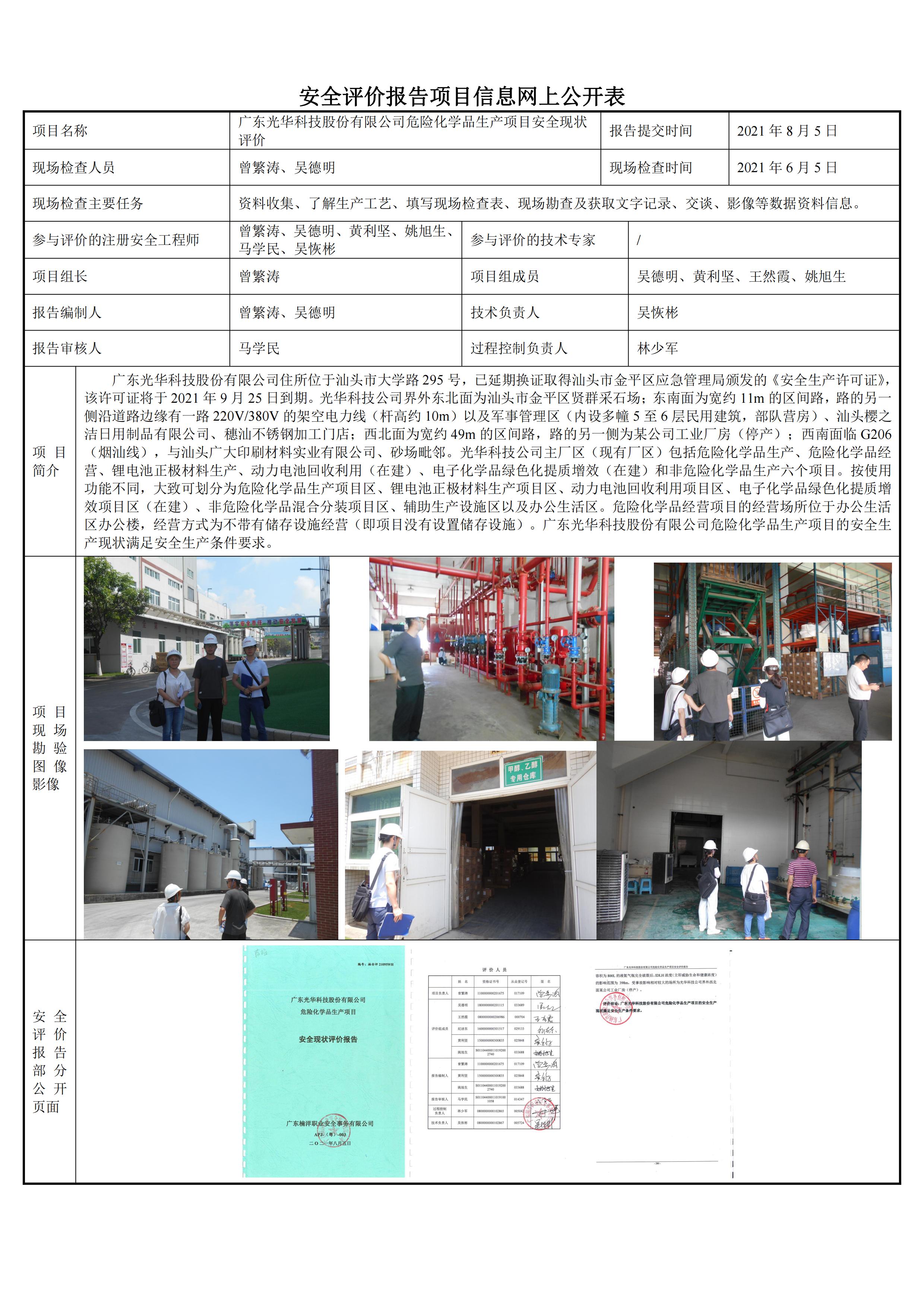 广东光华科技股份有限公司危险化学品生产项目安全现状评价报告