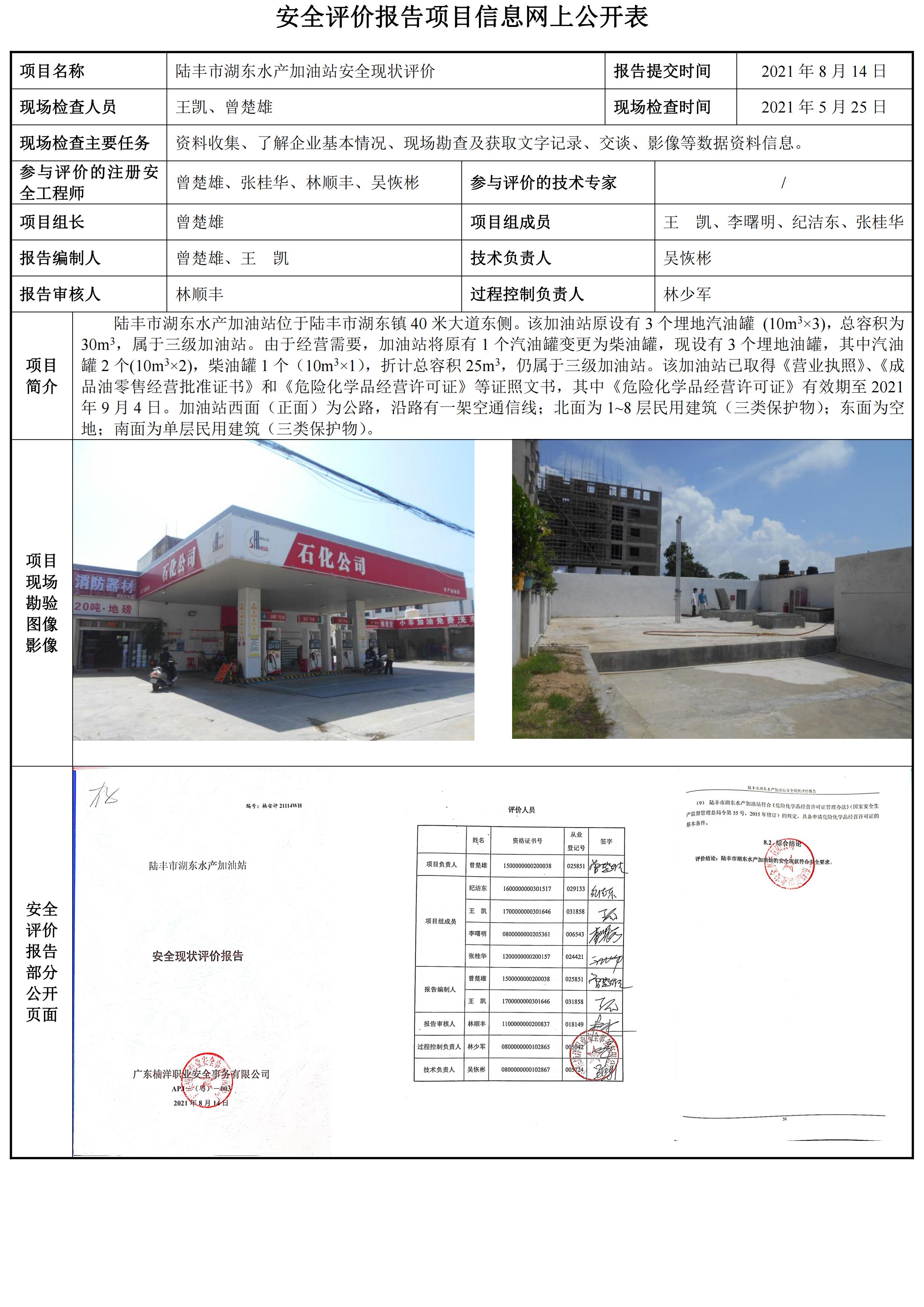 陆丰市湖东水产加油站安全现状评价