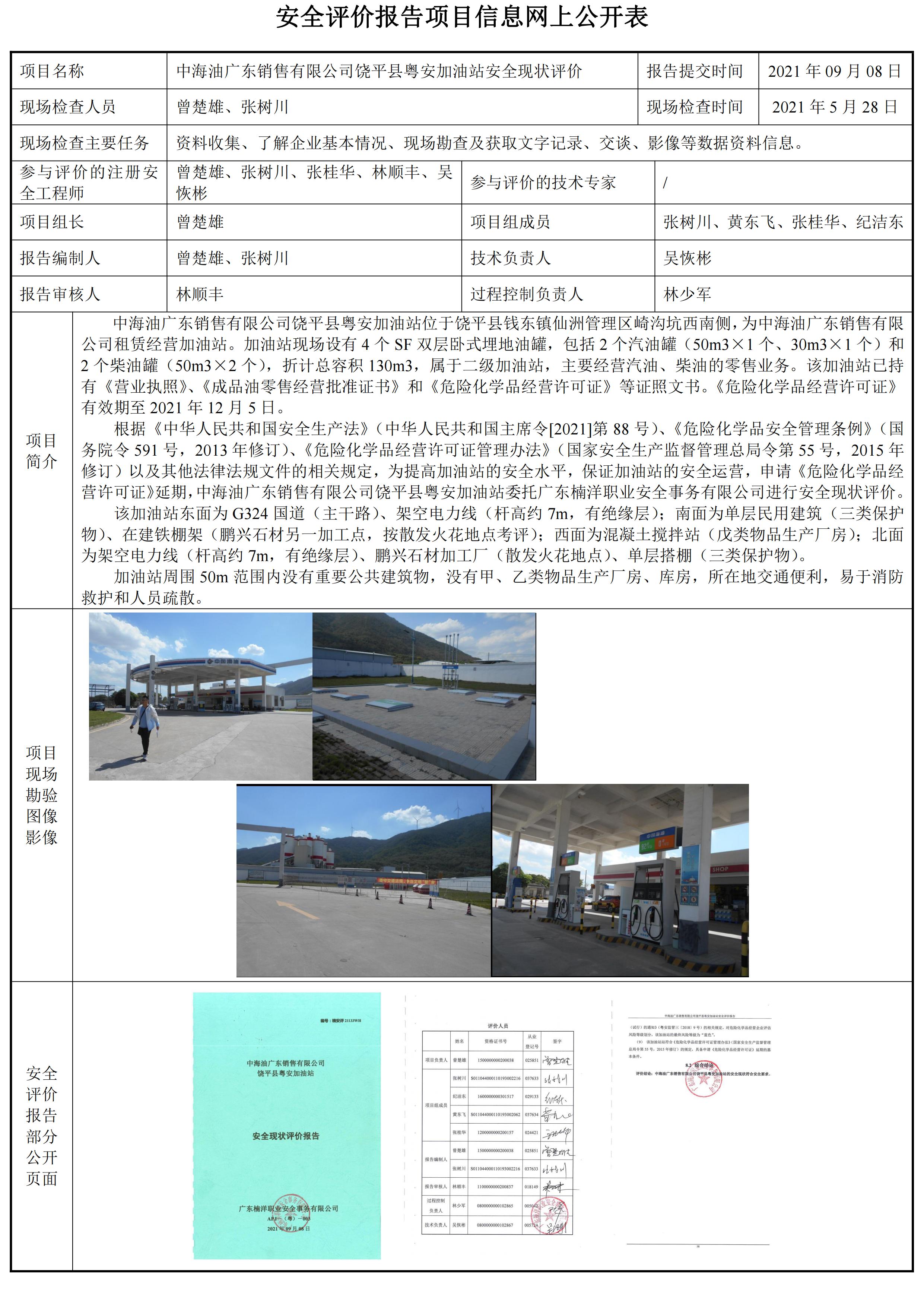 中海油广东销售有限公司饶平县粤安加油站安全现状评价