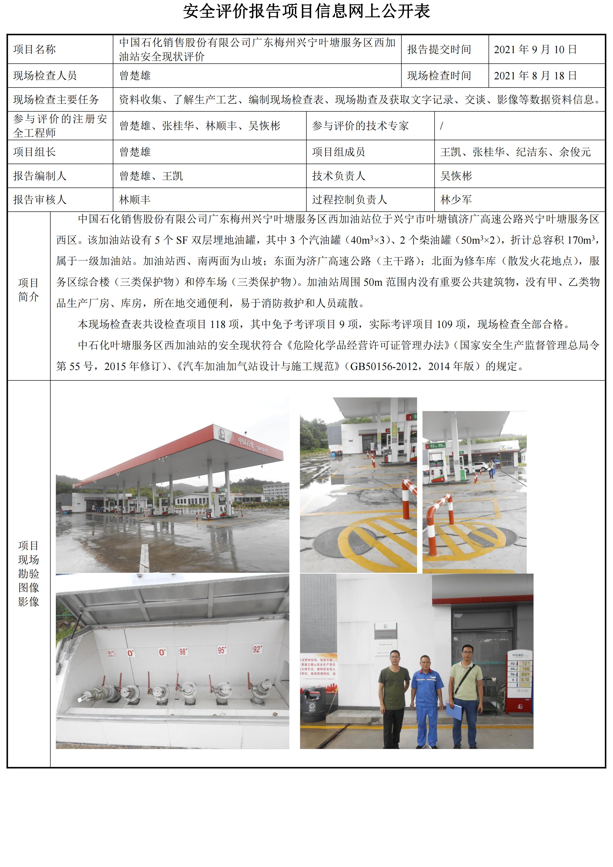 中国石化销售股份有限公司广东梅州兴宁叶塘服务区西加油站安全现状评价