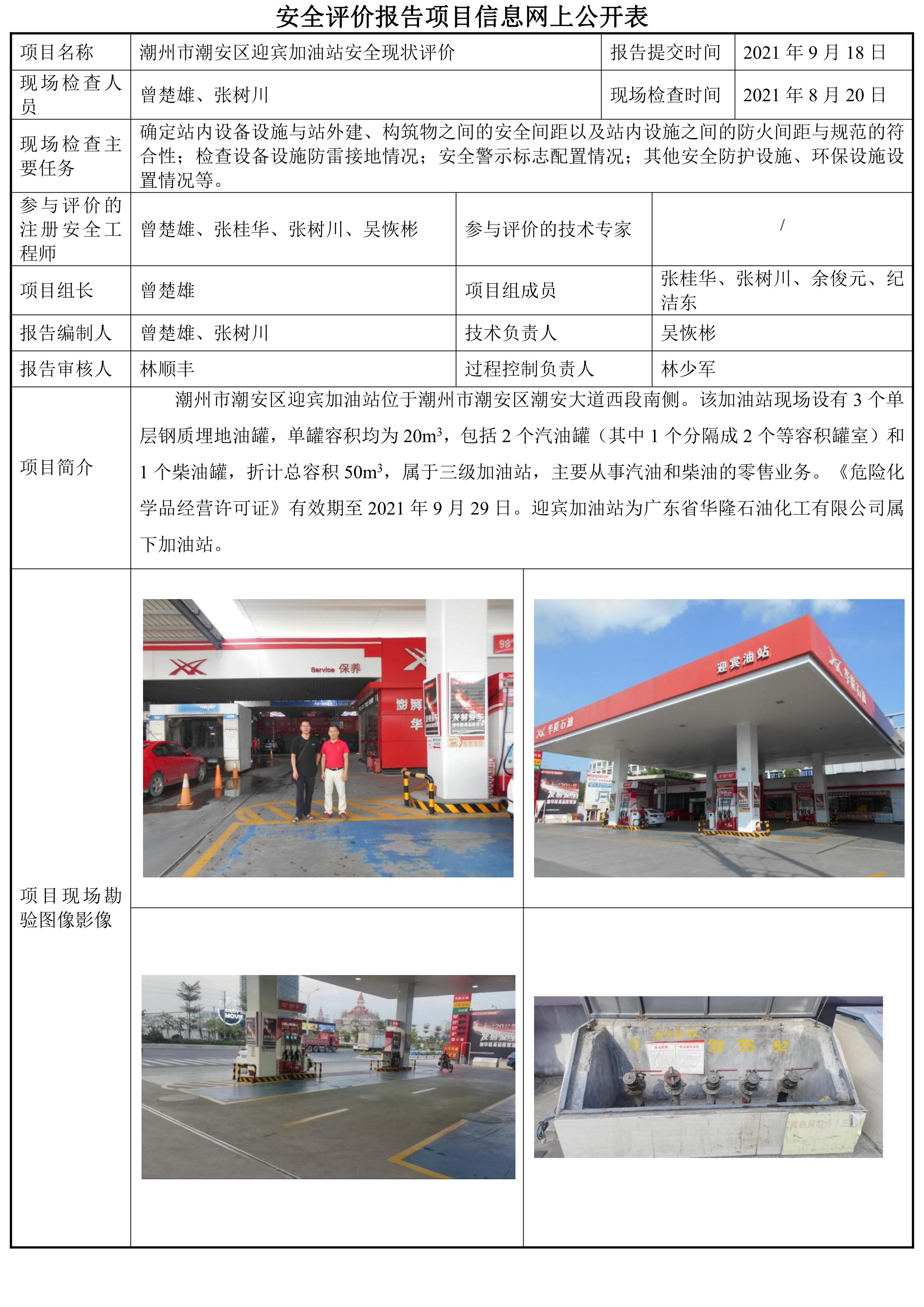 潮州市潮安区迎宾加油站安全现状评价