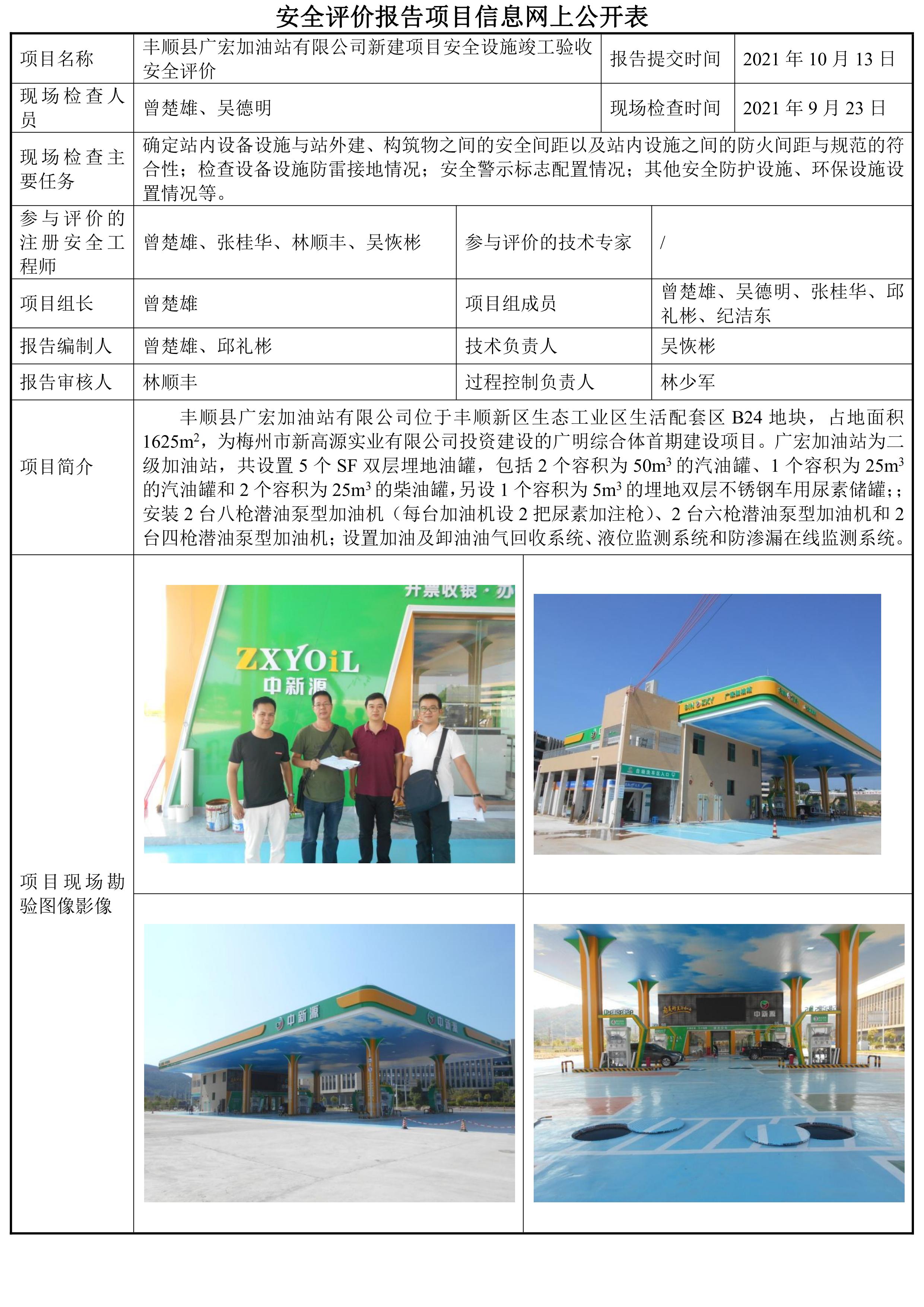 丰顺县广宏加油站有限公司新建项目安全设施竣工验收安全评价