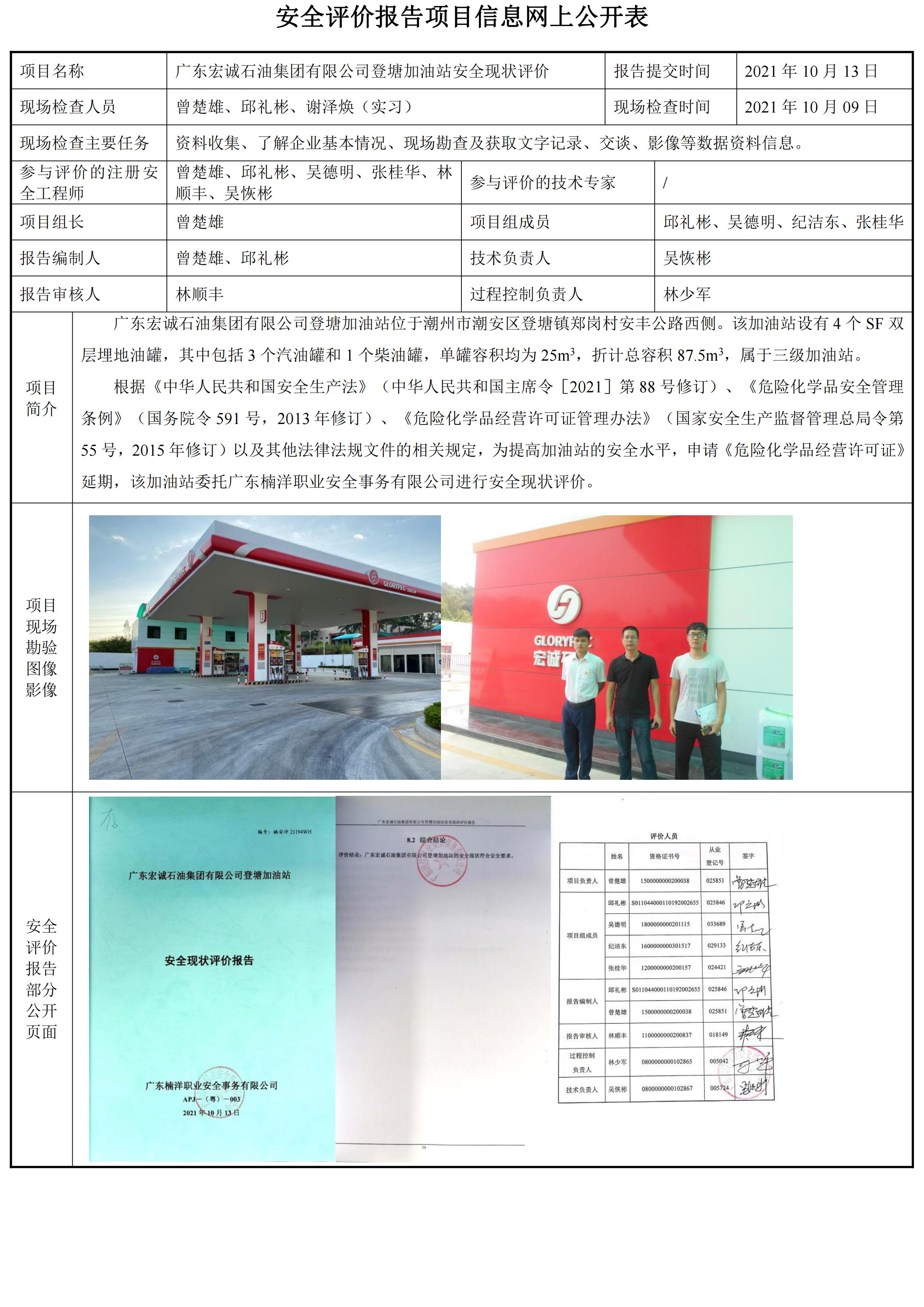 广东宏诚石油集团有限公司登塘加油站安全现状评价