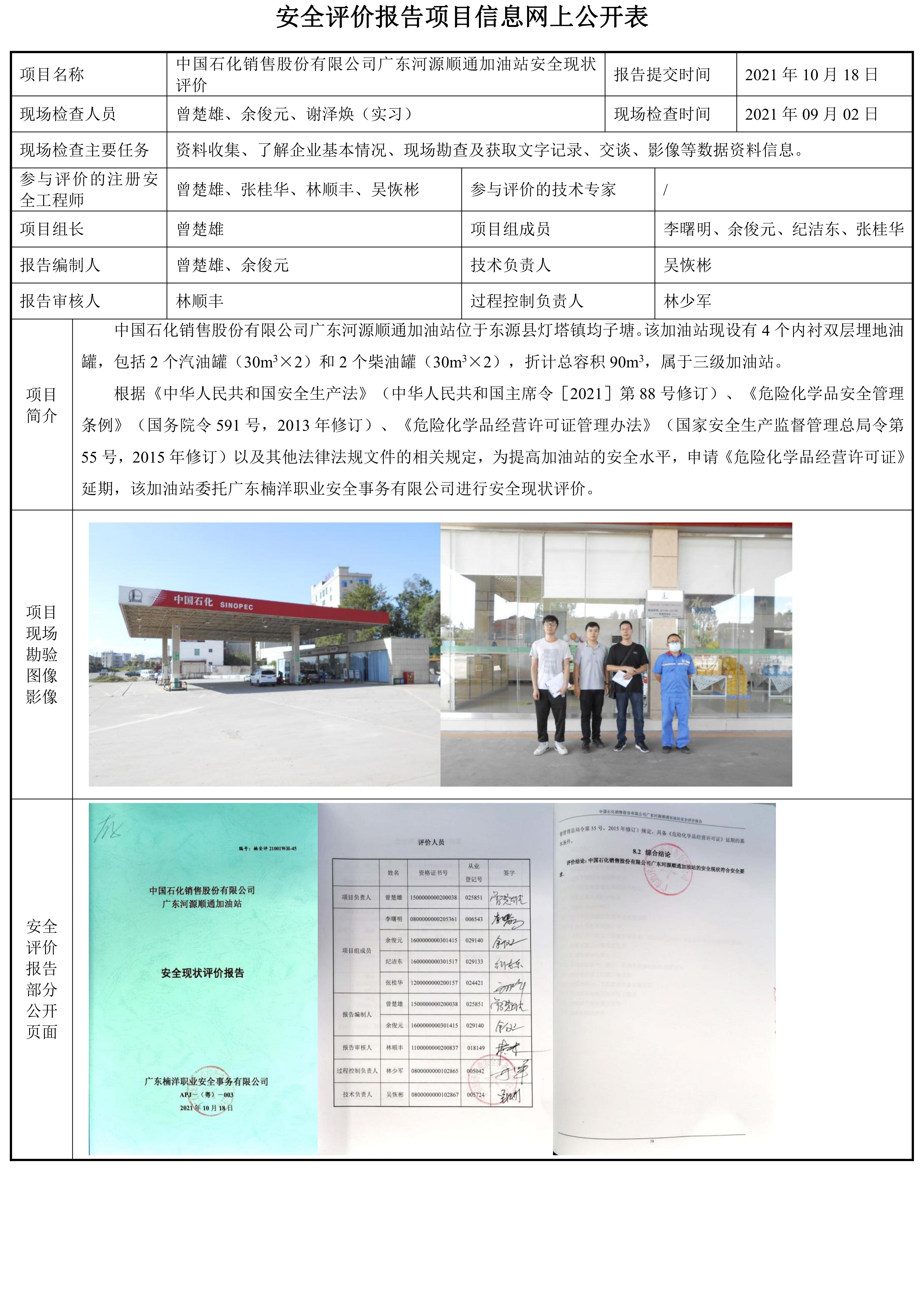 中国石化销售股份有限公司广东河源顺通加油站安全现状评价