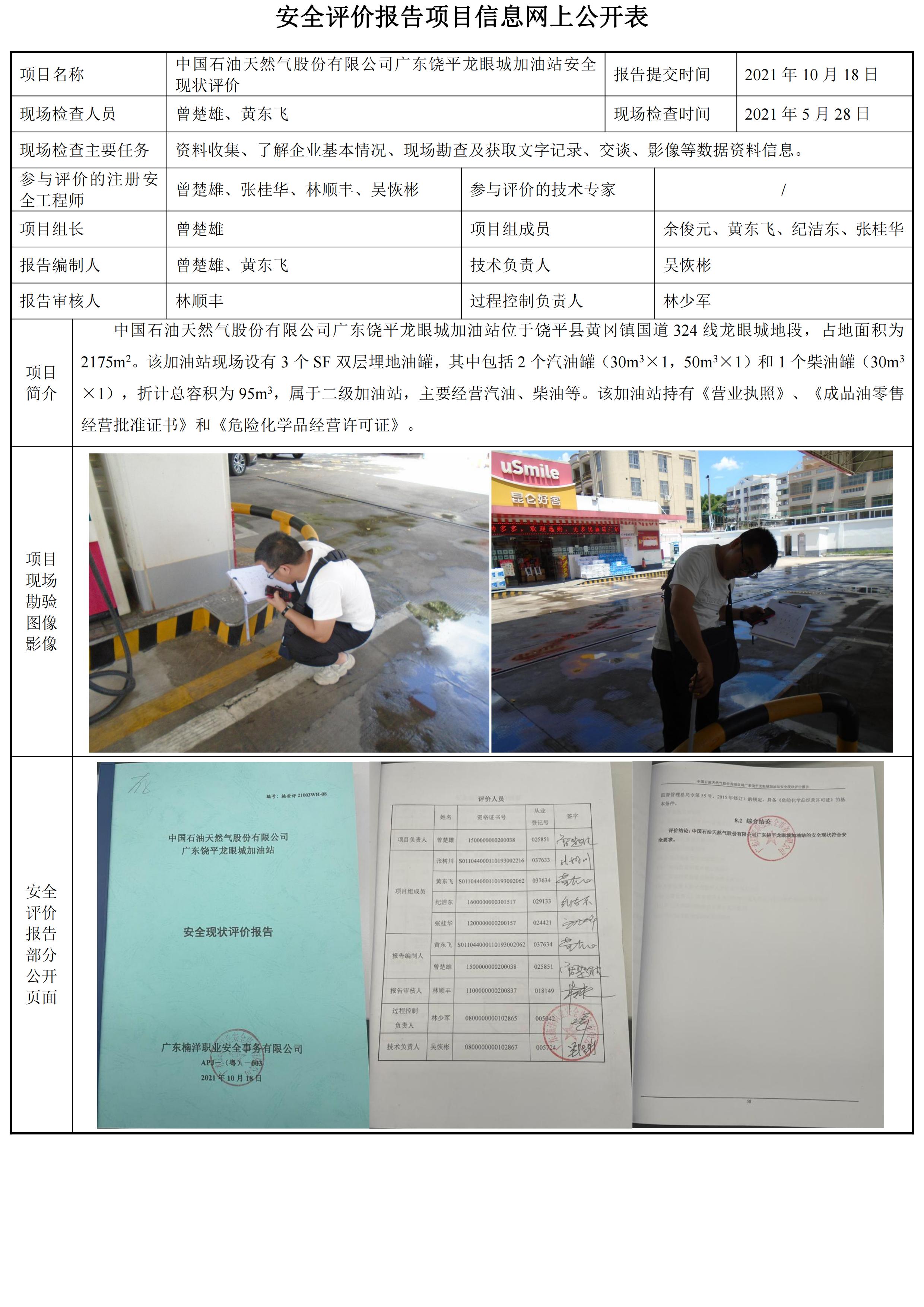 中国石油天然气股份有限公司广东饶平龙眼城加油站安全现状评价