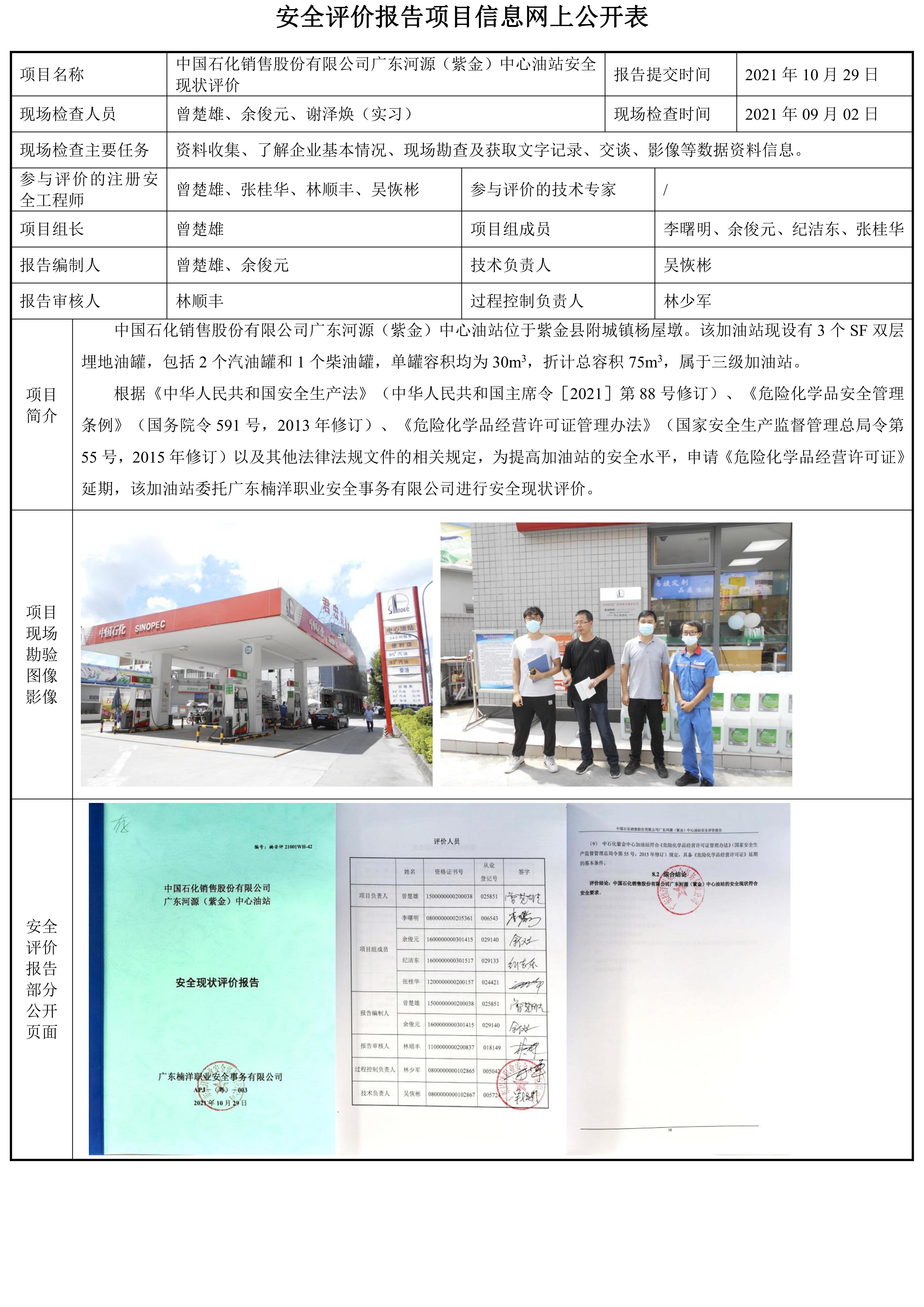 中国石化销售股份有限公司广东河源(紫金)中心油站安全现状评价