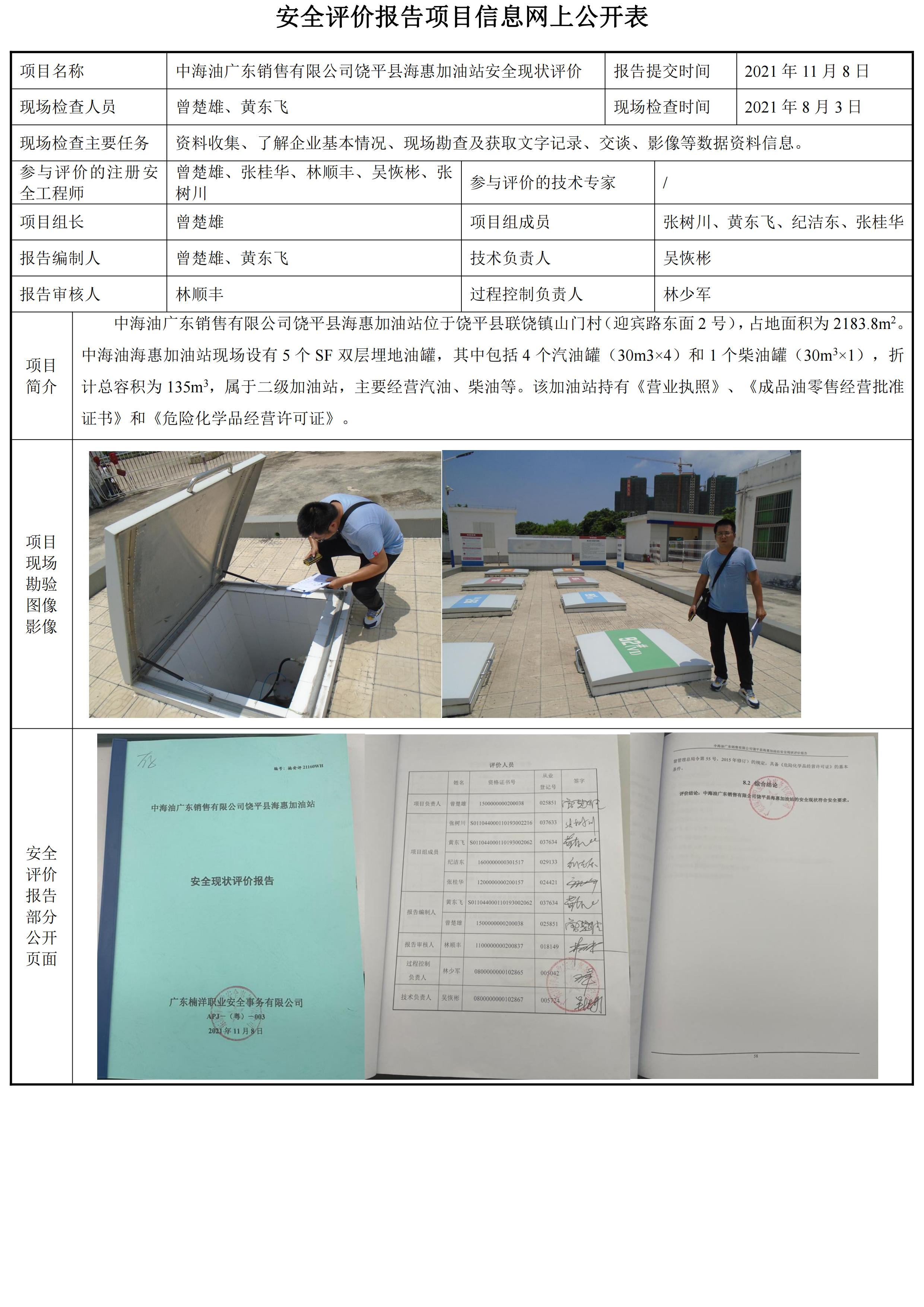 中海油广东销售有限公司饶平县海惠加油站安全现状评价
