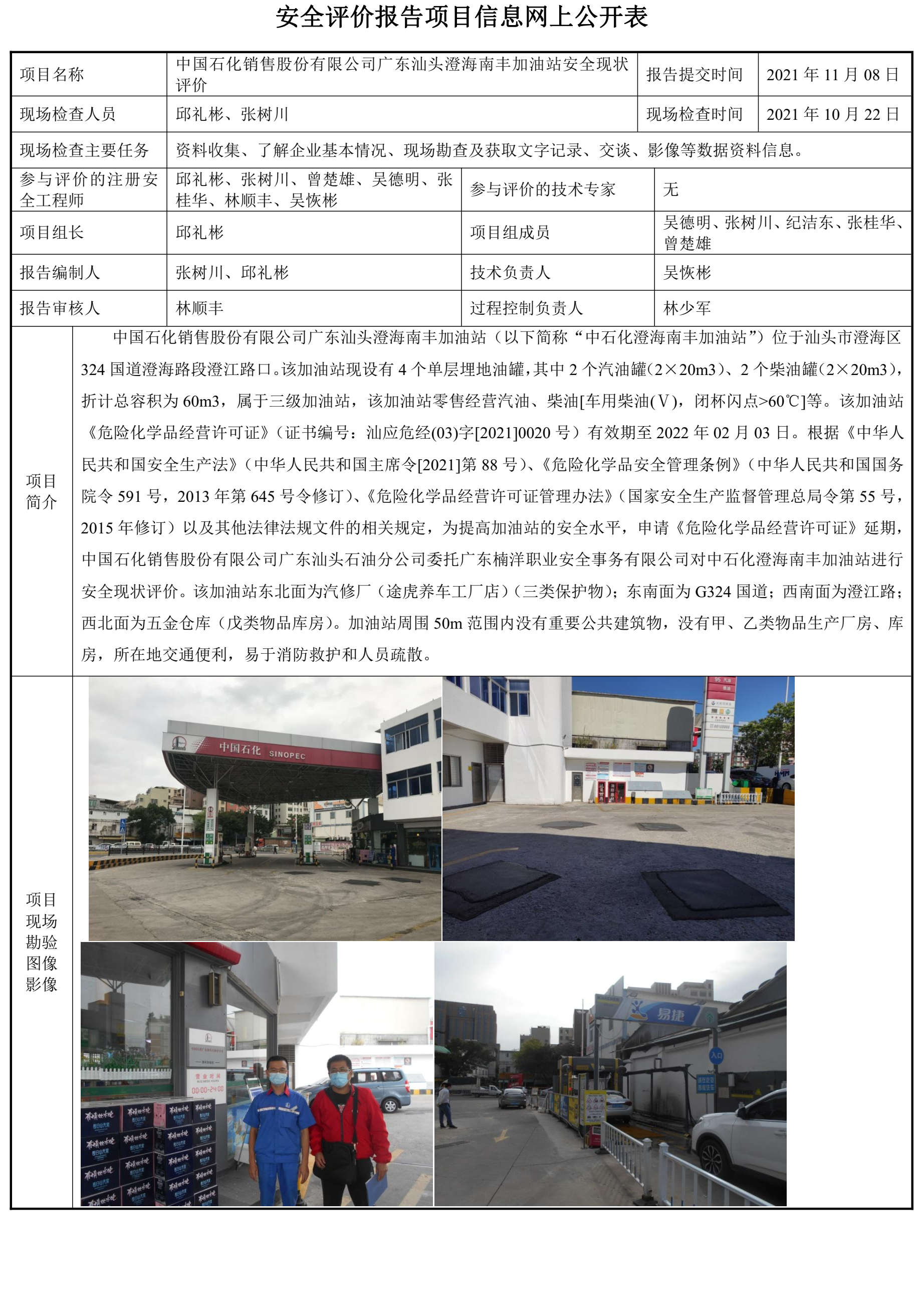 中国石化销售股份有限公司广东汕头澄海南丰加油站安全现状评价报告